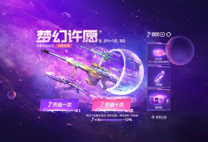 哈喽各位CFer们大家好~随着9月版本的临近,各大平台关于新武器的爆料也多了起来。在诸多新武器中,最引人瞩目的当属复刻端游的雷暴套装,而这套武器将会在9月于“梦幻许愿”活动中发售。接下来,请让本期资讯带你了解该活动的玩法规则吧!【活动时间】梦幻许愿活动的持续时间是9月24日-10月31日,届时大家可以前往游戏内的“精彩活动”界面参与。需要注意的是,活动不一定会在0点上线,下午上线也是有可能的,