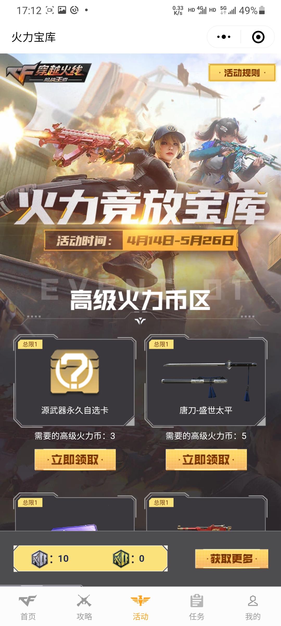 最近唐刀-盛世太平要返场,让很多玩家都比较开心,毕竟这把武器外观很特别,加上之前活动有很多玩家并没有获取,所以这次唐刀-太平盛世返场无疑是大家最喜欢的,不过兑换方式,却有很多玩家有自己的看法。【活动兑换方式】熟悉小程序兑换方式的玩家都知道,小程序的活动一般是需要好友助力,才会领取相应的兑换币,其中分为普通兑换币和高级兑换币,普通兑换币是好友登陆游戏以后即可相互助力,高级兑换币则是需要邀请指定日