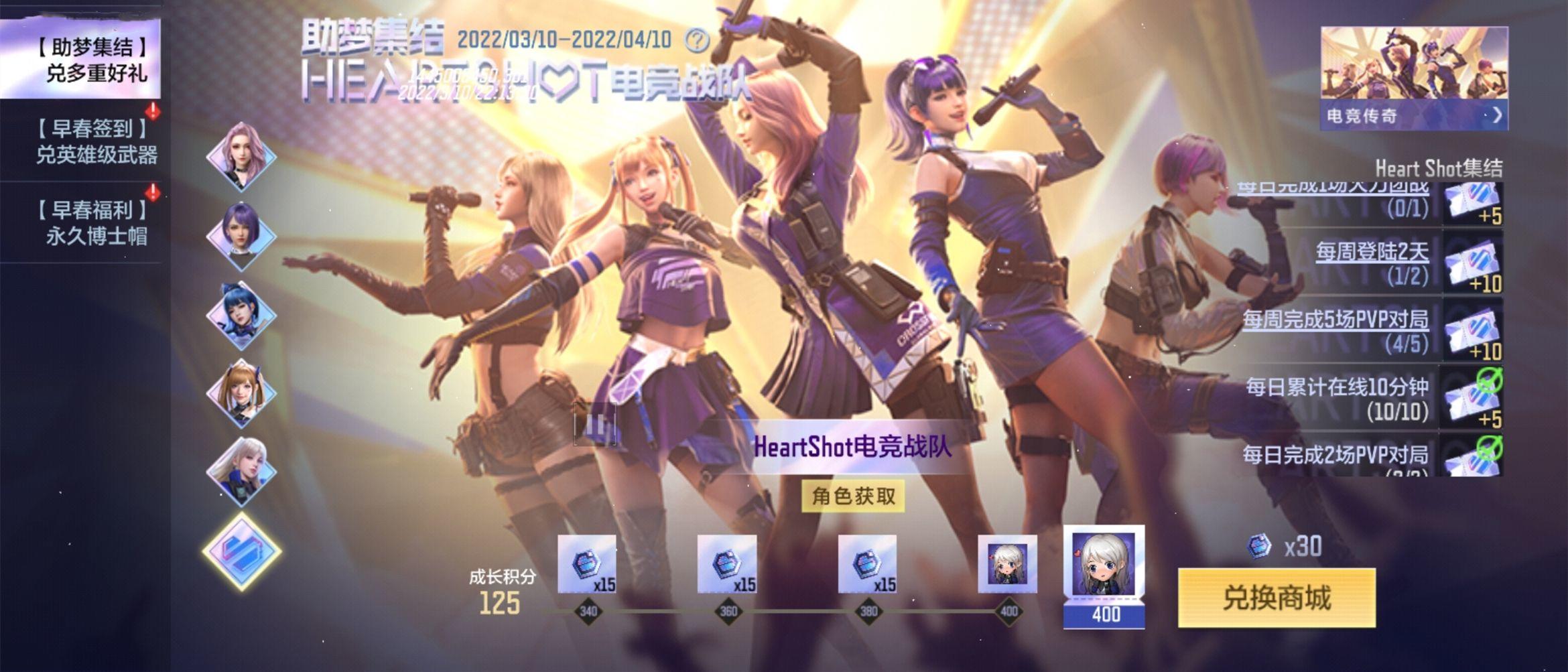 哈喽各位CFer们大家好~为了迎接HeartShot女神们的到来,游戏中将会在3.11日上线助梦集结活动,届时大家可以前往福利中心参与。本期活动先知将为你介绍该活动的规则和奖励,快一起来看看吧!【活动规则】HeartShot助梦集结活动共持续30天,前10天每2天解锁一个角色,后20天为战队界面。期间大家可以通过完成任务累计经验,经验达到一定数量后可陆续获得角色头像、HeartShot兑换币等