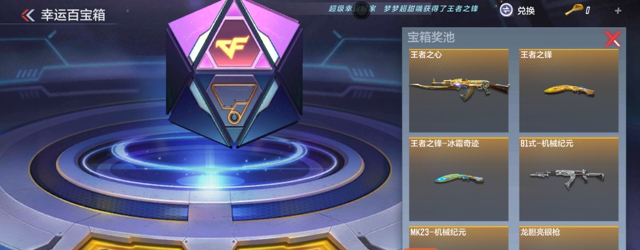 哈喽各位CFer们大家好~幸运百宝箱活动即将上线,近期我们也为大家爆料了该活动的积分兑换详情。值得高兴的是,为了让大家能以更优惠的价格拿到心仪的道具,该活动会略微优化部分道具的兑换价格,快来看看最终版的积分兑换吧!首先是王者之锋和它的冰霜奇迹皮肤,这两款道具的兑换价格是大家讨论得最多的,它们最新的兑换价格分别是600积分和400积分。作为一款经典王者近战,王者之锋的性能和品质是有目共睹的,优惠了