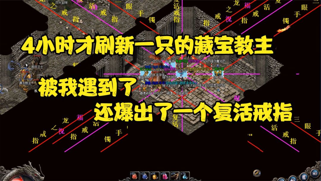 热血传奇:偶遇4小时刷新一只的藏宝教主,喜提复活戒指一枚!