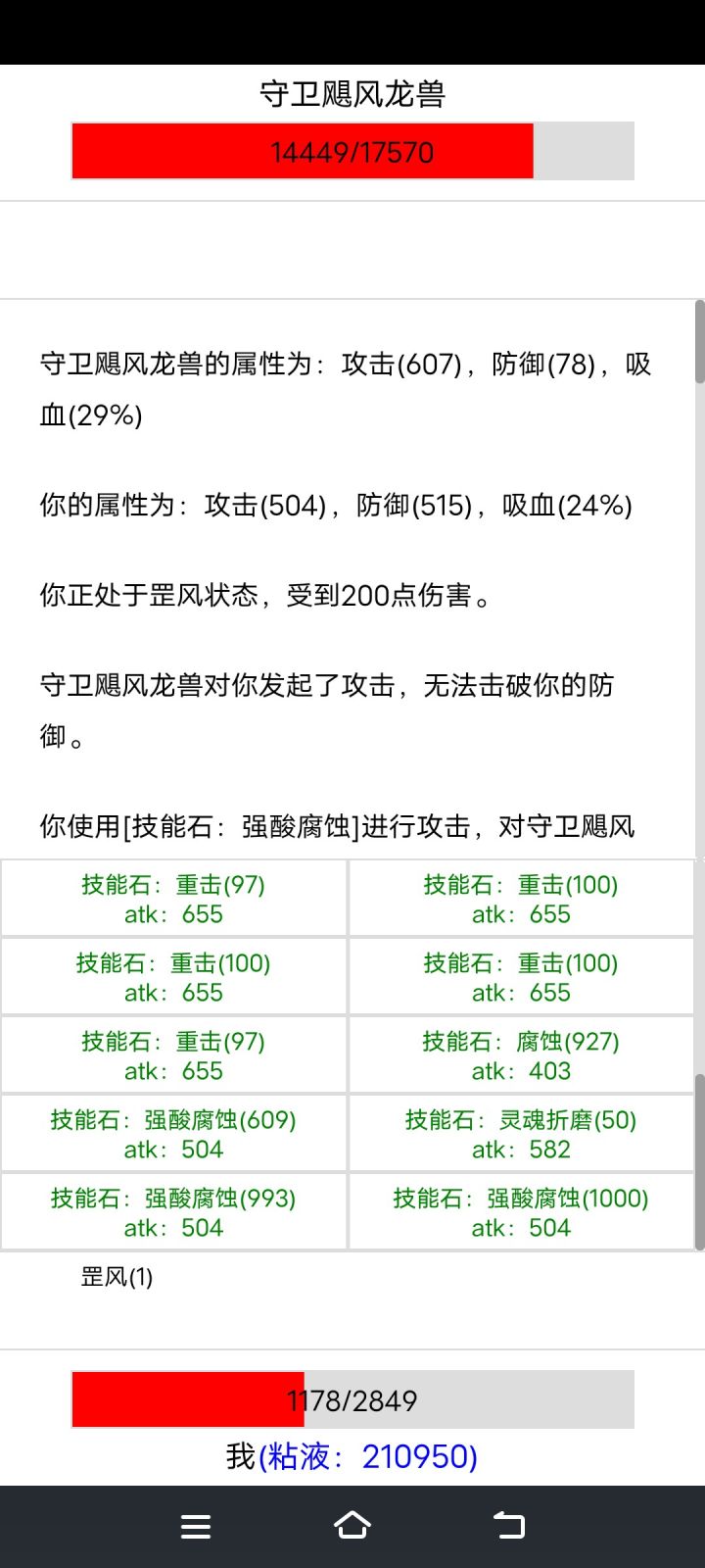史莱姆 使用强酸腐蚀减对方防御10点 同时也减自身攻击10点 有点小离谱 后来发现腐蚀也会减自身攻击 这bug不知道啥时候出来的