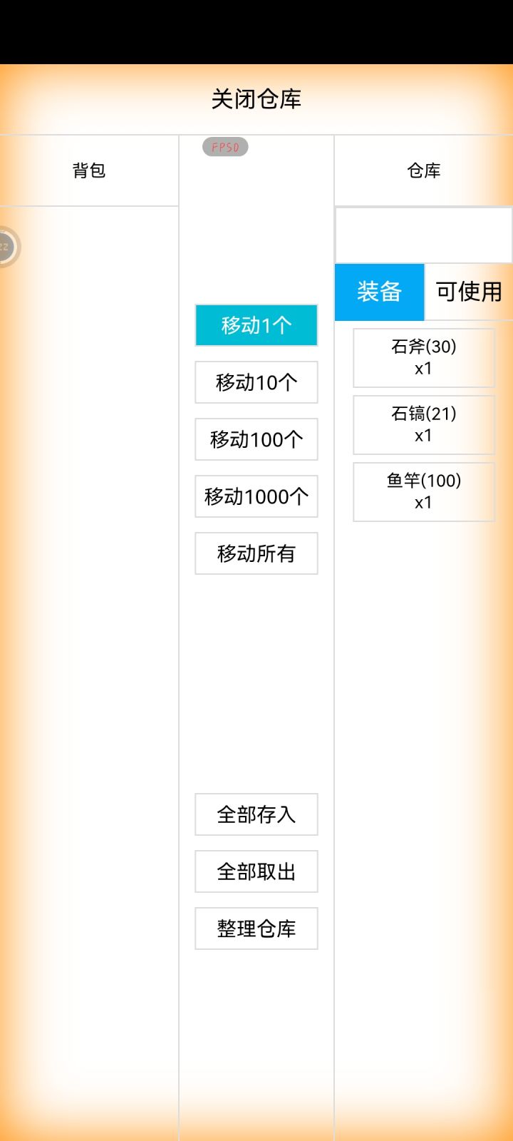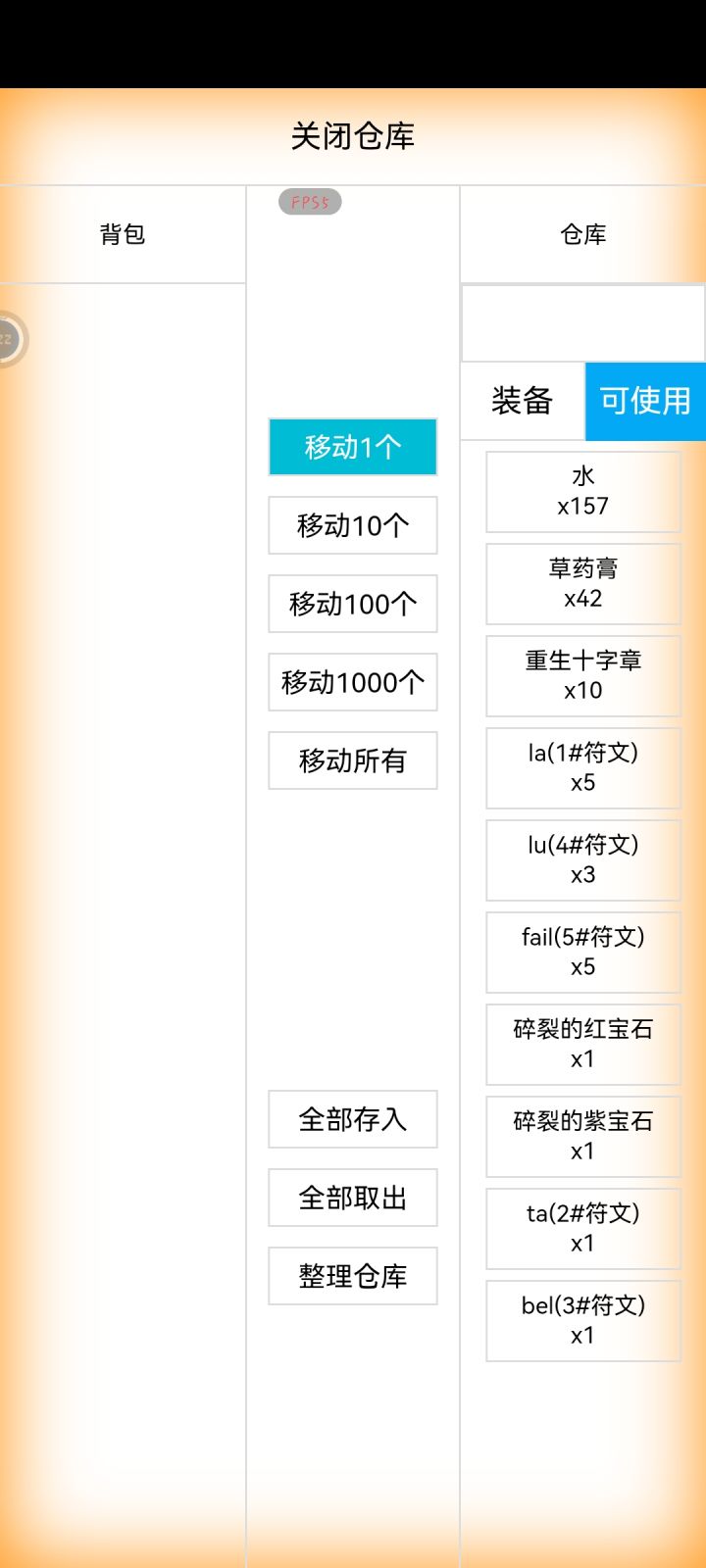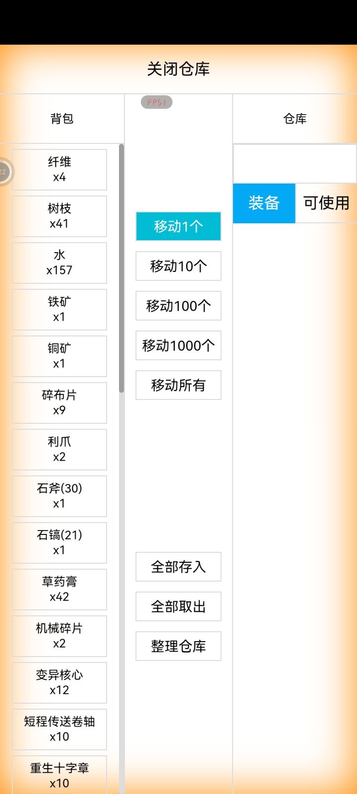 怎么才能让仓库显示所有物品?点了装备或者可使用后,很多材料在仓库里都看不见了,只有全部取出才能把这些材料取出来……