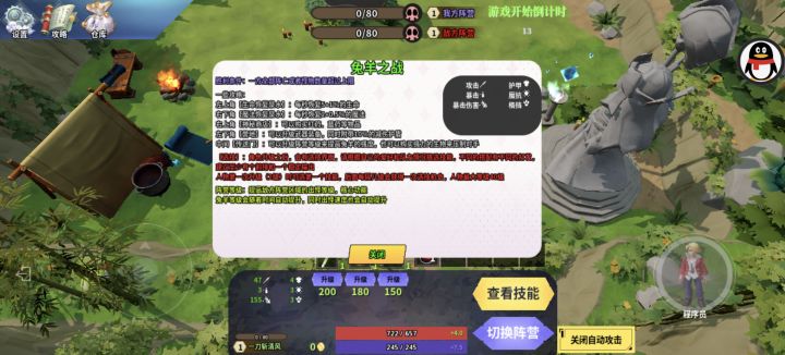游戏概况兔羊战争目前是一款支持1v1,2v2,3v3的团队合作游戏,游戏胜利的方法目前存在两种一种是我方怪物存在80只或对面玩家全部死亡。(在游戏过程中玩家死亡无法复活,所以最好还是不要乱跑)----------------------------------------------------------------------------地图介绍营地营地位于地图左下角,在营地中有10