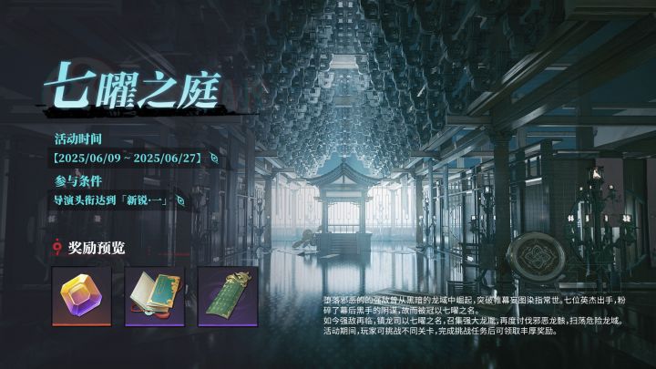▶ 下载《归龙潮》堕落邪恶的强敌曾从黑暗的龙域中崛起,突破帷幕,妄图染指常世。七位英杰出手,粉碎了幕后黑手的阴谋,故而被冠以七曜之名。如今强敌再临,镇龙司以七曜之名,召集强大龙胤,再度讨伐邪恶龙骸,扫荡危险龙域。活动期间,玩家可挑战不同关卡,完成挑战任务后可领取丰厚奖励。 ✦活动时间2025/06/09 ~ 2025/06/27 ✦参与条件:导演头衔达到「新锐·一」➤《归龙潮》1.