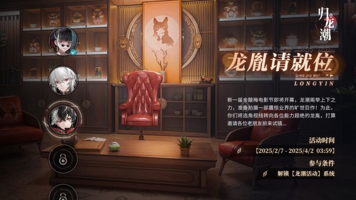 ▶ 下载《归龙潮》新一届金酸梅电影节即将开幕,龙潮阁举上下之力,准备拍摄一部震惊业界的旷世巨作!为此,你们将选角视线转向各位能力超绝的龙胤,打算邀请各位老朋友前来试镜...✦活动时间2025/02/07 ~ 2025/04/02 03:59✦参与条件:解锁【龙潮活动】系统➤《归龙潮》全新1.3版本【双生无间】现已开启!✦立即前往下载:更多内容回顾>>✦1.3版本活动情报速递✦《归