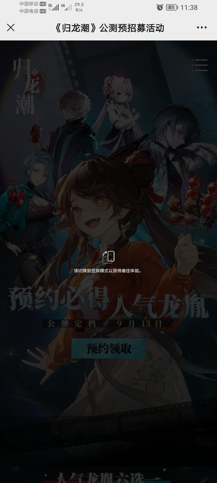 这个这个网站有点问题。#归龙潮 前面前面选完角色。,还没领。 点道具一直选中不了。我还以为他是卡的,我直接领。结果领完发现他道具没选上。现在道具还不能重新选。微信那边一直卡在那个转向界面。现在还少了两个道具。