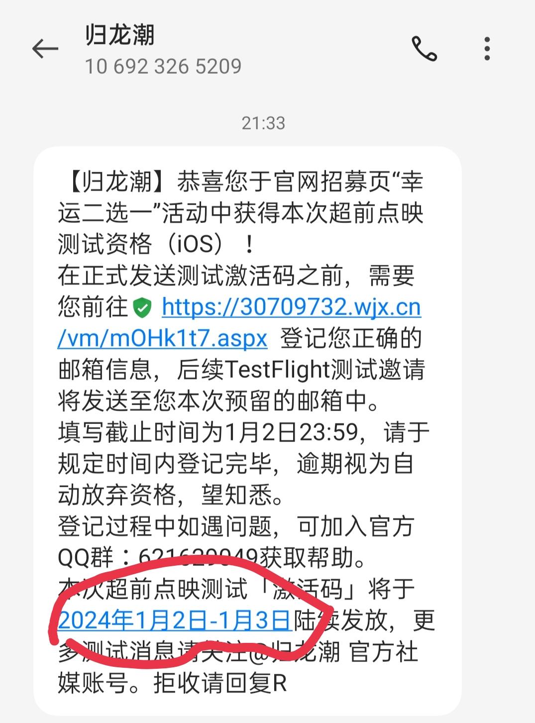 限定文件夹抽中都寄到了我都收到了,但到现在还没收到短信验证码?(拦截垃圾短信看了也没有)我看群里论坛其他有资格的都收到了啊,不会出问题了吧,有没有场务帮我查查额#归龙潮超前点映测试