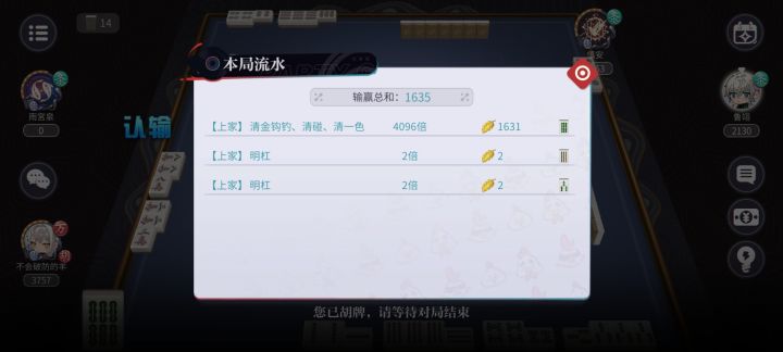老潮啊#归龙潮 可以修修bug吗?我打个麻将差点笑岔气。你别说这麻将可太好玩了,1600个叶子哈哈哈哈给我牛批坏了