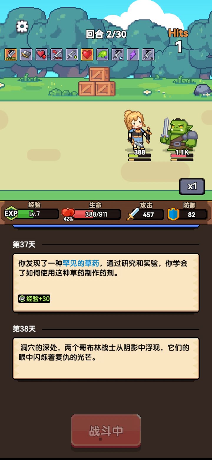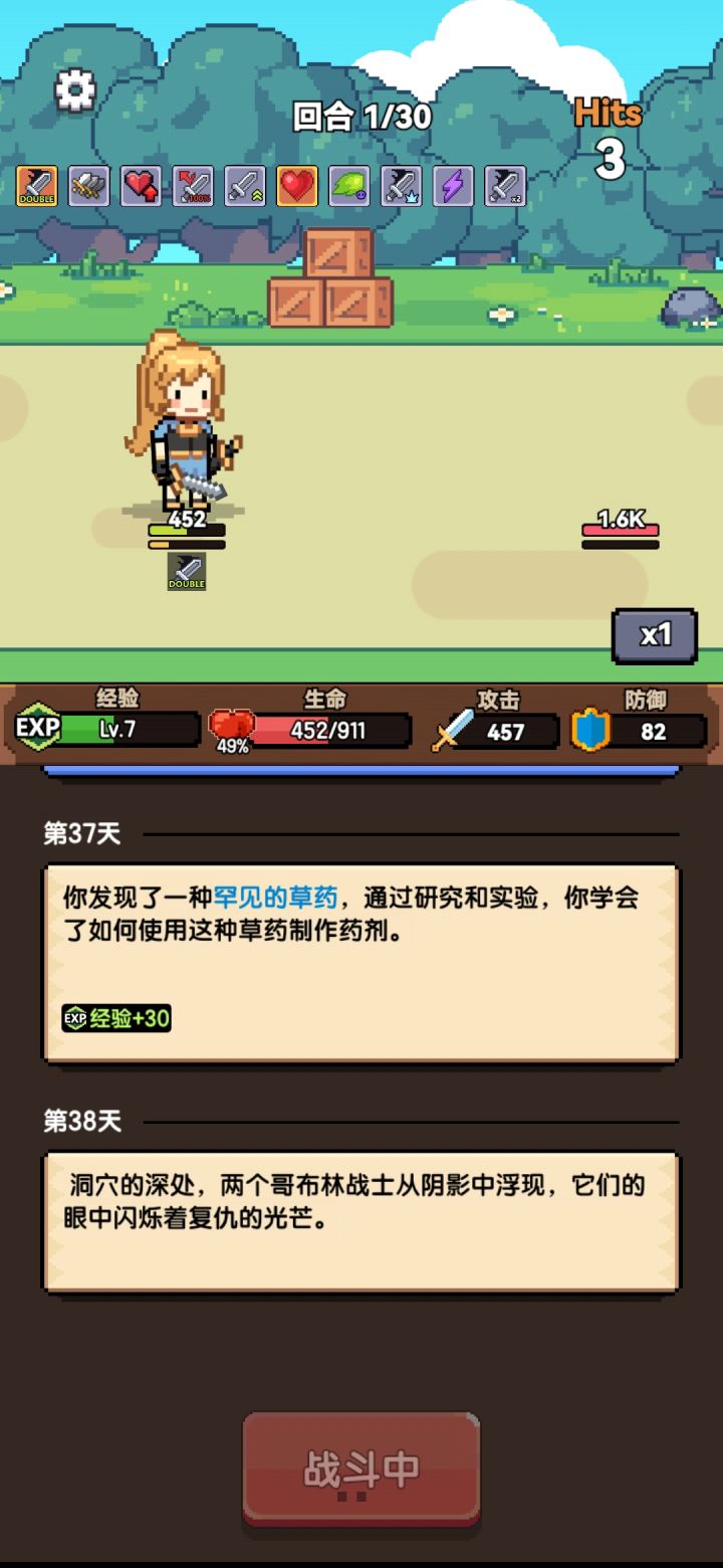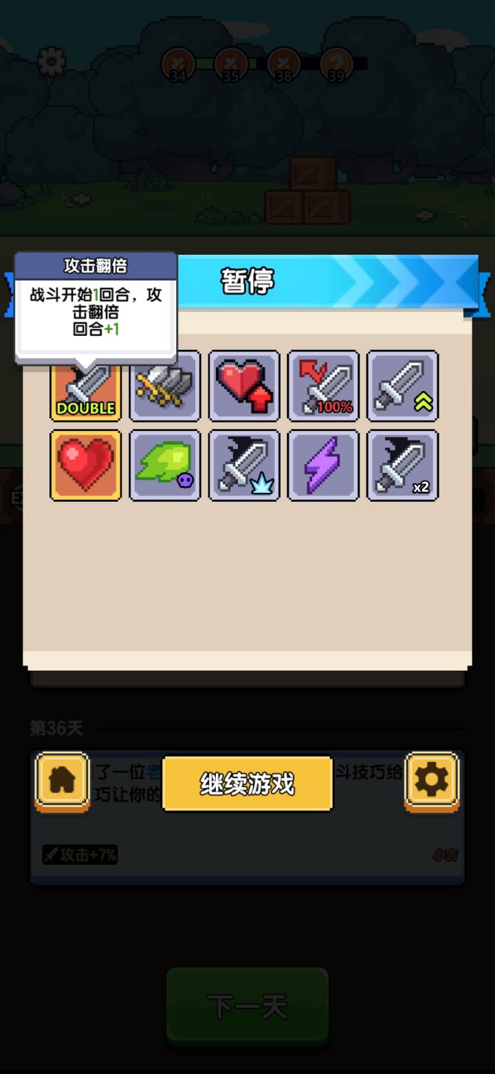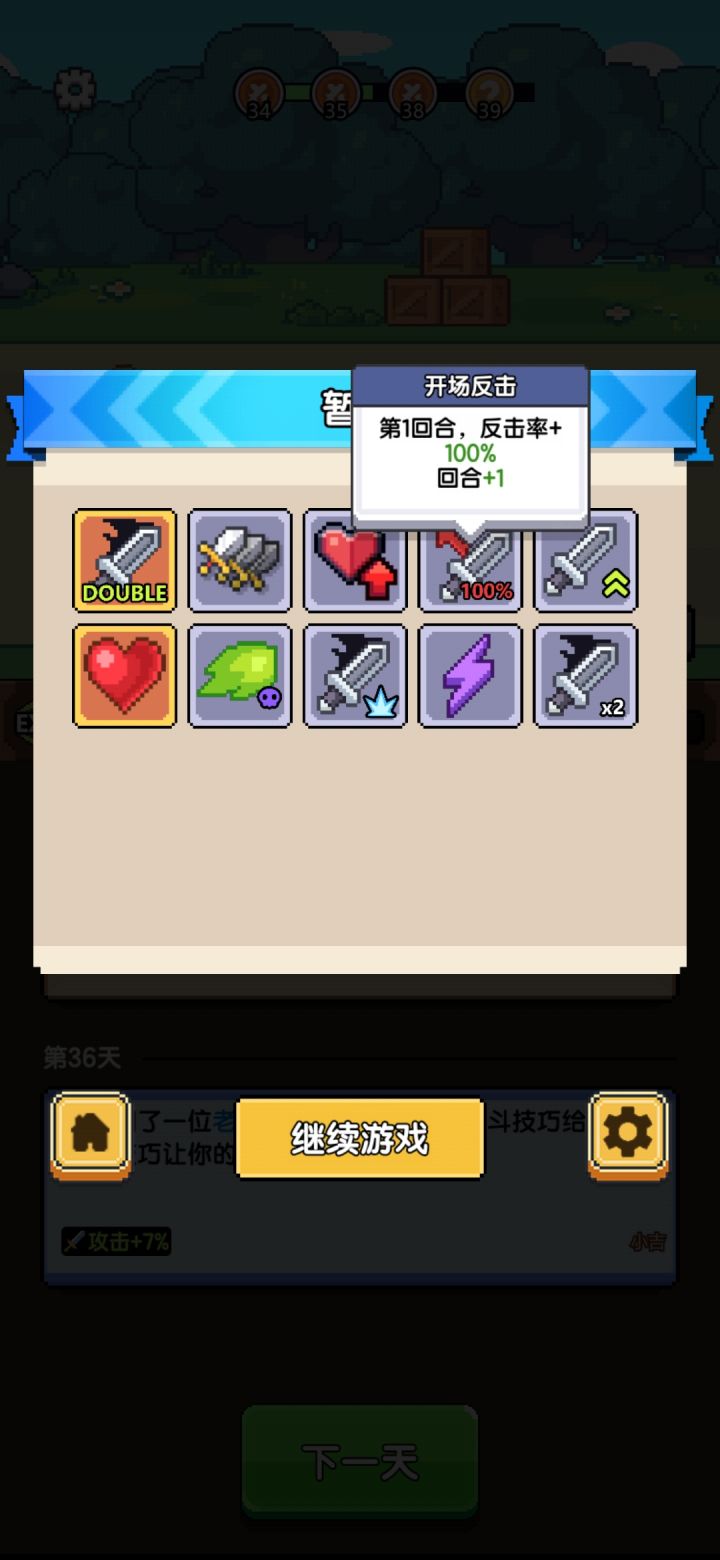 攻击翻倍,100%反击的升级效果都是回合+1,但是全都没有效果,同时反击没有计算攻击力加成,明明双倍了应该是900攻,但是反击伤害和后面没buff的是一样的。以为这把稳过,没想到连boss都没见到就没了,bug太多了