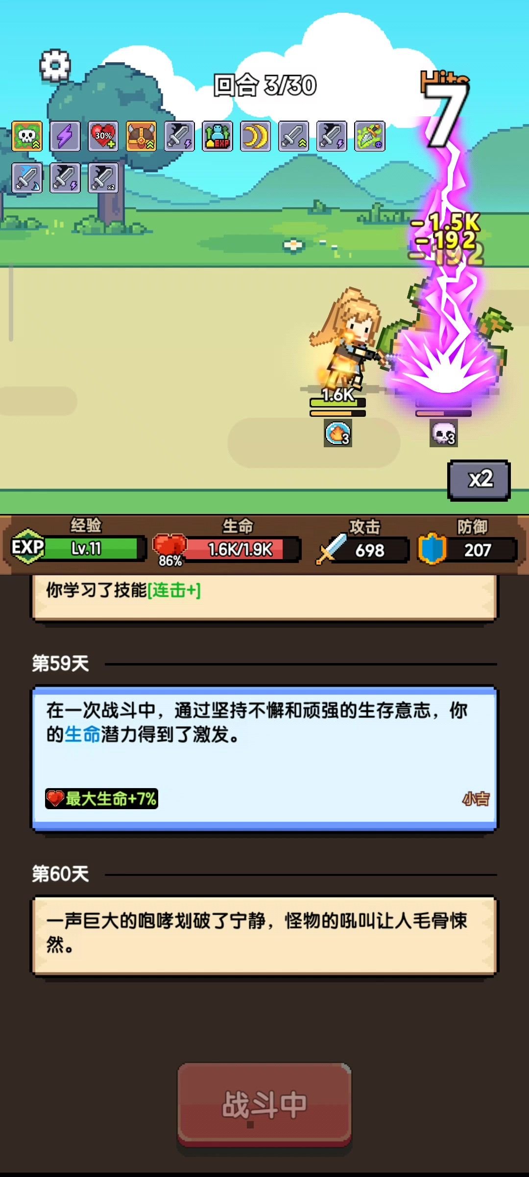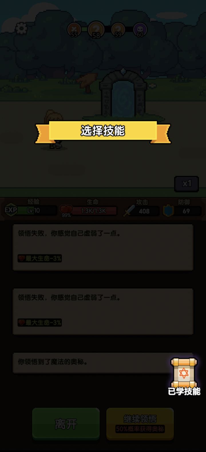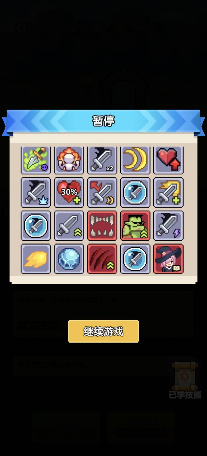 发现一个bug,如果主角跟怪物一起死亡,游戏就会弹出技能选择但卡住不动,还望改进。