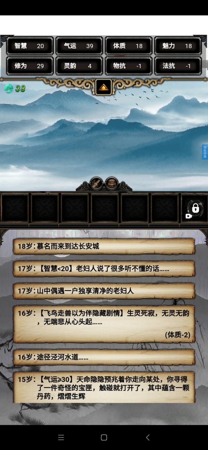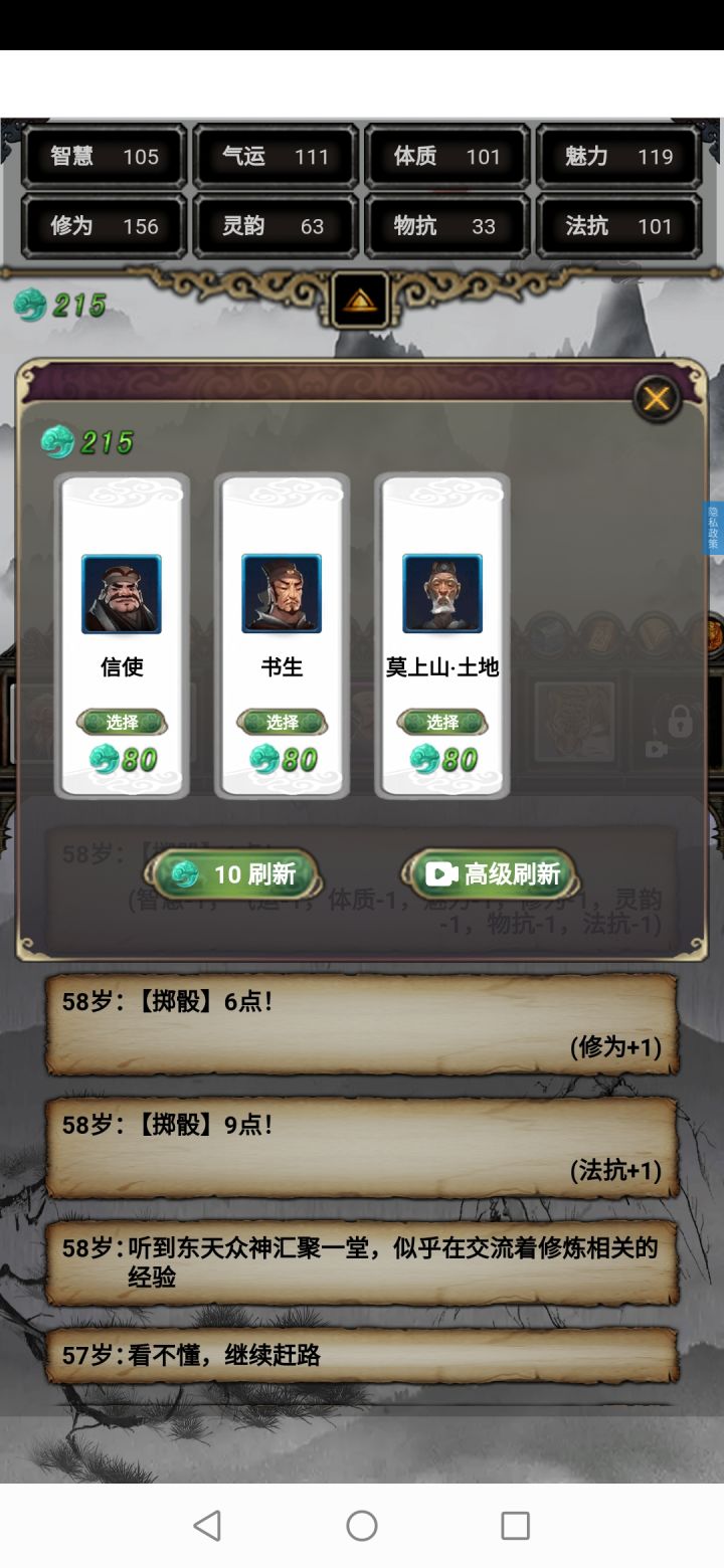 有bug 成就里的天可汗战斗一次全属性➕1,天赋唐僧加属性时多+1至3 这两个不叠加 还有天赋选择只能看广告才有金色天赋 我后面1000多仙缘刷了200都没有 这不合理 该增加一个100仙缘刷新可出金 广告不是那么刷的啊是