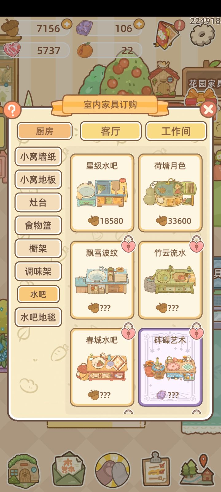 看友友们好多都不知道容量什么的容量跟你能做的数量和能用更多的东西挂钩缝纫台上面的容量为4,就是解锁了装饰区和精品区的,可以做更好的纺织物花束台上面的容量就是表示可以做的数量,灶台也是一样储物柜跟材质柜是一样的容量就是可以装的数量,储物柜是食物,花束一类(还有打工鼠的东西),材质柜是装纺织物的(感觉大家都懂,就随便说说啦👅)