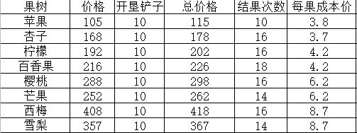 观看说明本文分水果序&直售利润与首字母序配方两部分如有意见、建议、错漏,欢迎提出指出,可留言回复也可以官方1群找@杏子 90515。考虑可能的物价调整所以目前不继续更新餐馆售价,餐馆订单基本不亏。按进度推荐一些能赚点小钱的直售配方:苹果+杏子杏子+百香果柠檬+樱桃杏子+百香果+樱桃+芒果其他攻略贴传送门第一部分 成本计算与水果序利润表此部分肥料价格均以45分肥计,肥价在大表中