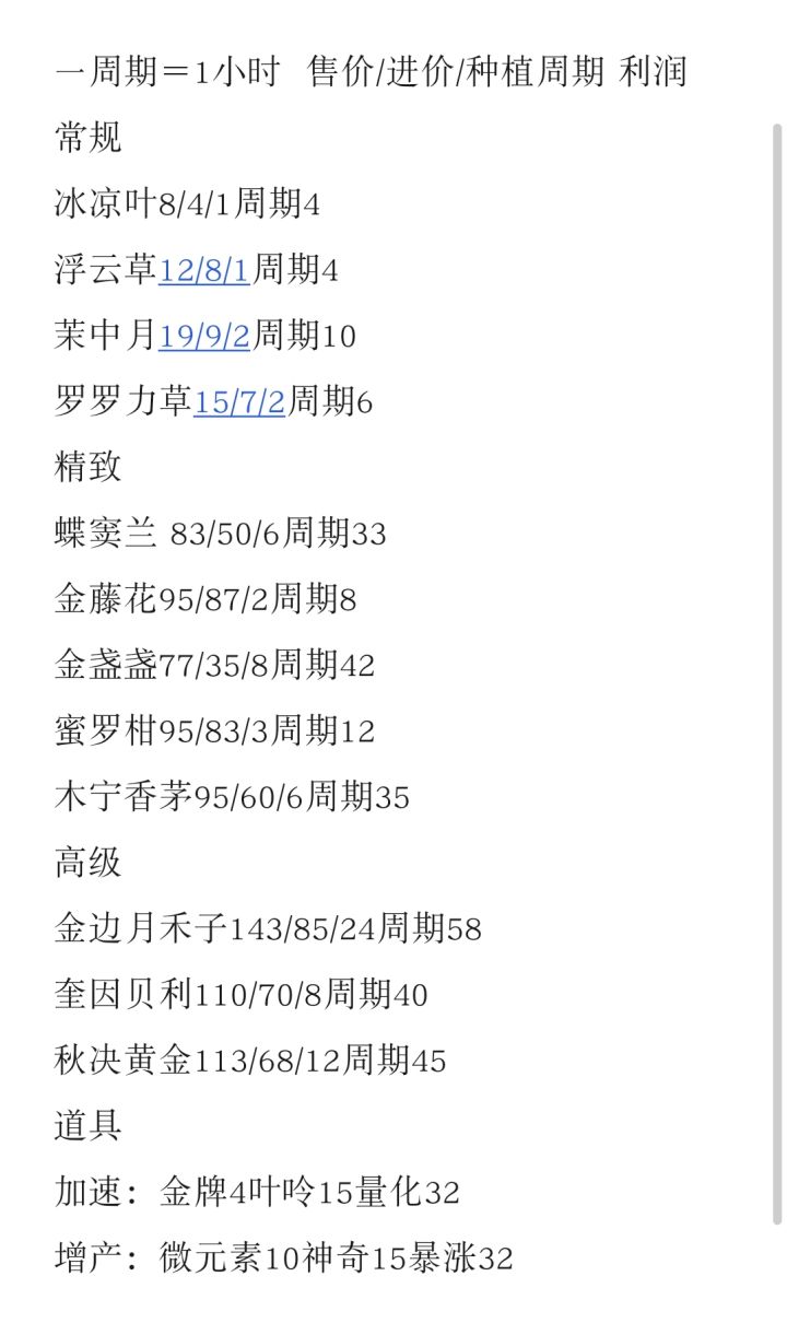 《种田》一些让鼠鼠我不亏本的随记虽然不知道田隔多久不种新东西就会干 也不知道成熟植物占着坑不领会不会干 所以到了晚上会种六、八个周期之类的作物(保守道具里增产的道具在出售时也会增加相应百分比的价格 总之最终成交价大于道具的价格和种子进价就好啦对了 搞点新时代作弊小手段 拉个小窗玩刨冰150+星星不是梦😭但好像到了一定数值就到上限了 也不需要玩到着么多数值的星星