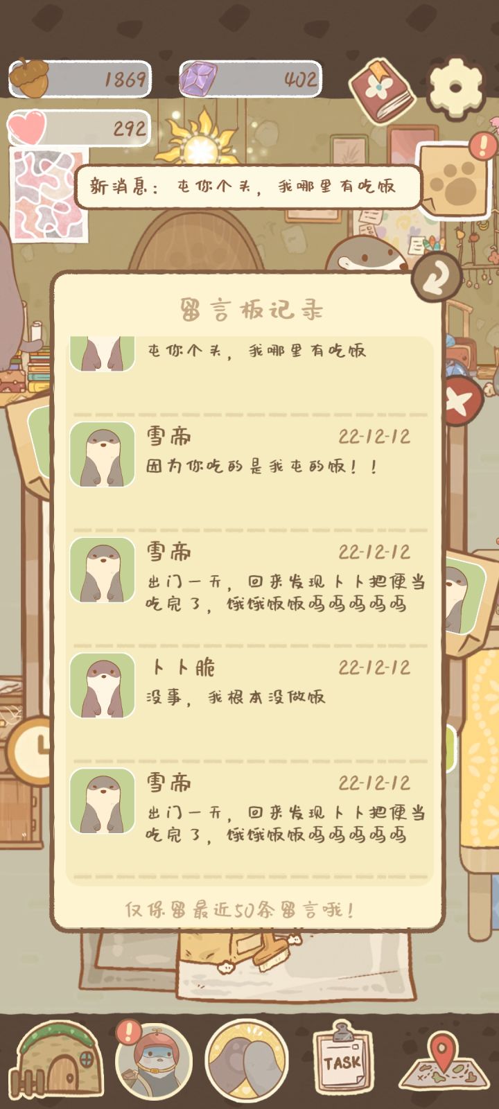 感觉还是有点bug和改进空间:1.鼠鼠的分工指引还是不太清楚,不太清楚居家鼠和打工鼠哪些工作都可以做,哪些只能特定鼠鼠做,有可能有指引吧,但是我没找到orz。2.要是可以增加游戏内打字和语音功能就好了!啊啊啊啊和朋友聊天还要开小窗发微信好麻烦(o`ε´o)3.订单配送页要是可以知道是谁购买的物品,和谁签收的就好了,这样更加对这个小家有归属感,要不然家里多了一些东西,都不知道是买的了4.打工小游戏再优化一点,有的时候不是很好点,尤其是那个刨冰机!5.感觉种花时间好长啊,刚上线还想肝看到那个一小时就萎了,能不能短一些,我觉得十几分钟就可以!(胡言乱语)