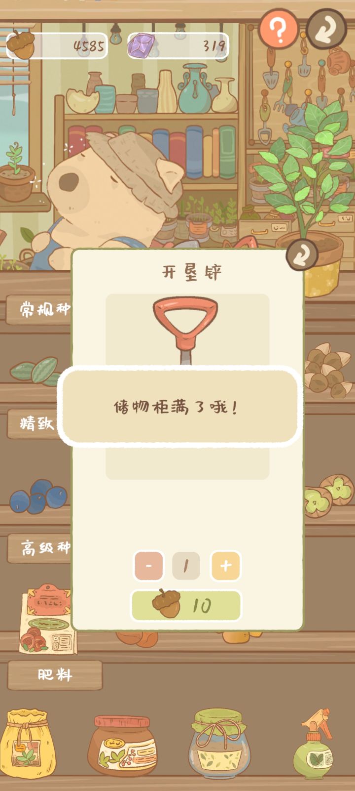 送的苹果啥的45个,仓库总共50个,然后超出了,买不了东西,卖也卖不出去,就这样卡住了。