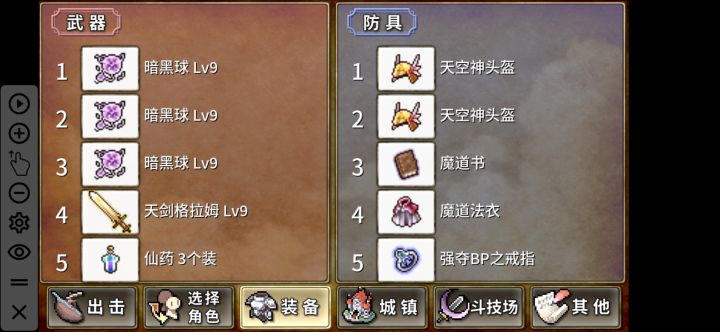 天空神两个暗黑球加瓶药就秒了。或者秃一个连续咏唱也能秒,一个暗黑球八千伤害。舍不得换电锯,武器算是全了,防具很多没有,因为走的暗黑球和金箭流,很多防具有没有都无所谓。过了天空神就没有继续刷的动力了。一点建议前期随便打,中期玩五金箭流,后期天界斗技场至少拿到魔道书再考虑魔法流刷暗黑球。在第九章之前,金箭都是够用的。其实九章之后也能用,不过魔法太猛金箭没办法越级了 ,而且敌方耐久太高金箭没效率