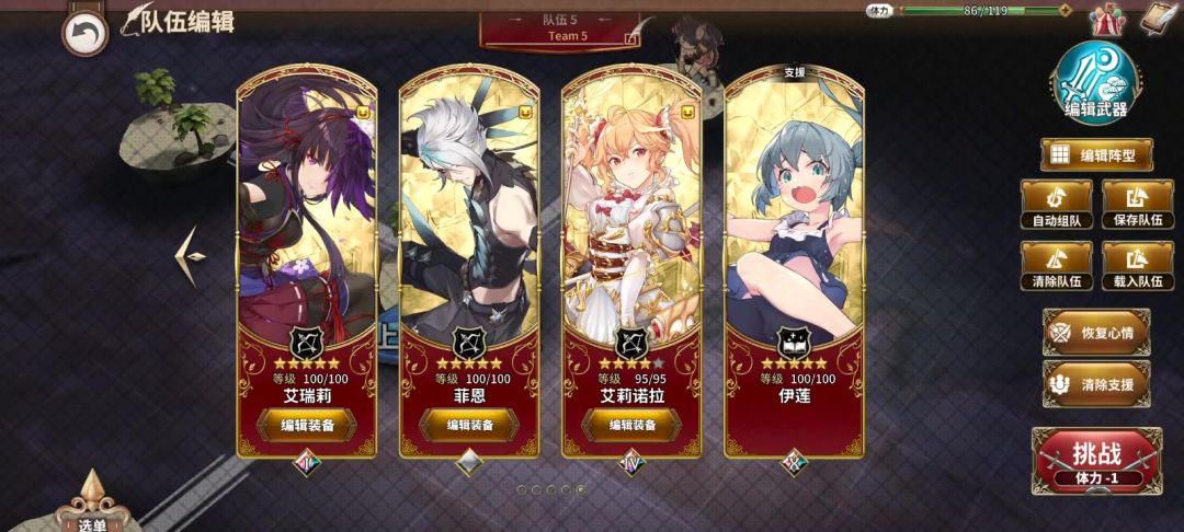 菲恩,风书,桃丽丝等高机动性的角色有优势。己方角色不必全上,后方角色更不要行动缓慢卡住前方冲刺队友的行动时刻,没事做可以弃牌换牌。我用的莉伊本局无任何优势,只是作演示。 挂了特配的桃丽丝和风书:一言不发 2045669