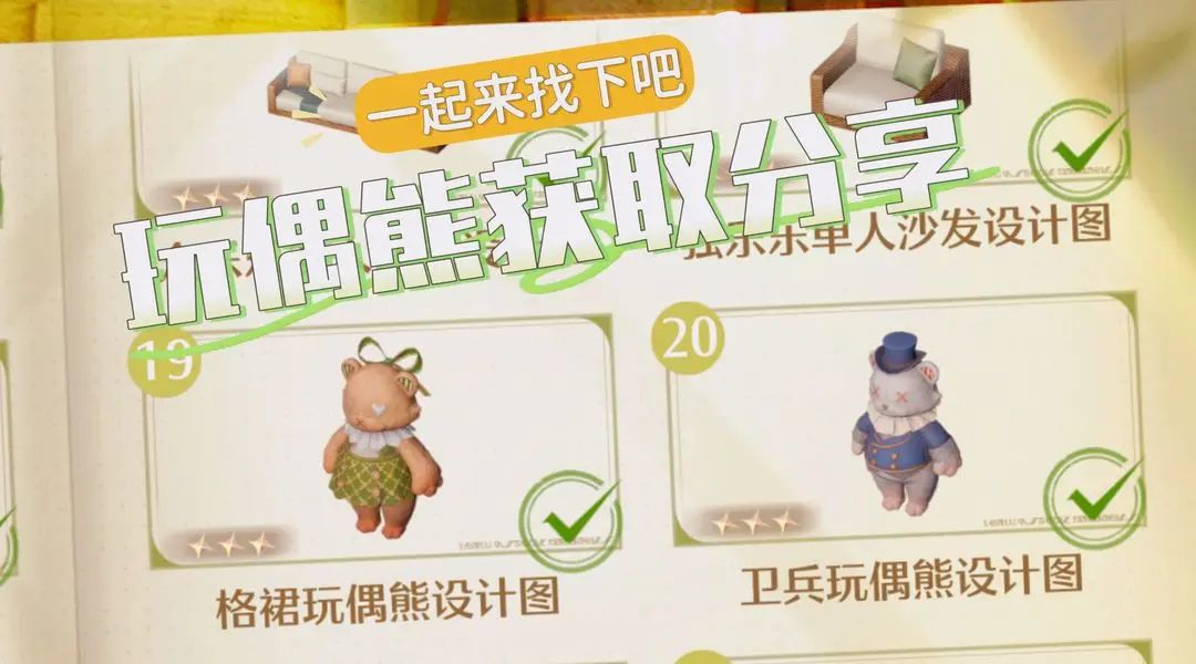 打开微风原野地图,传送到最右下角城堡的女王行宫遗迹地下路口,一直到行宫深处的玩偶陈列馆这里,往后跳下去最底下的玻璃展柜里,就可以扫到格裙玩偶熊和卫兵玩偶熊图纸。 #游戏日常 碎碎念:本来应该是行宫深处很多个地方都能扫出这两个图纸,但实际很多都扫不出来,而蝴蝶结玩偶熊设计图又能正常扫出,估计又是狗叠的bug,我反馈了这个bug,狗叠的原话:亲爱的搭配师您好,关于您反馈的玩偶熊问题,可以尝试更换位置,