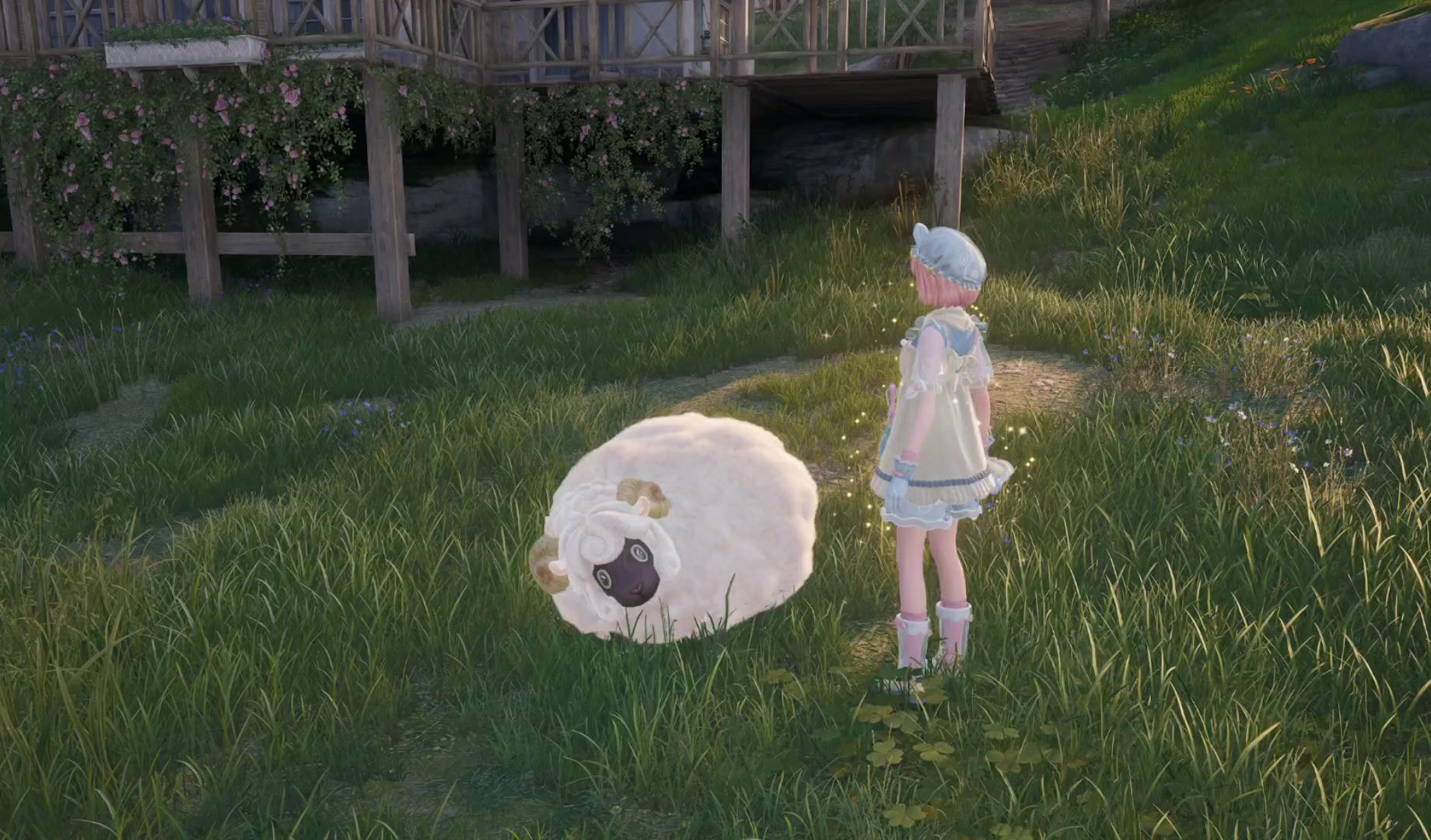 软软的羊羊,软软的小狗狗~梦幻的地图。细节、天气~真的很不错。休闲游玩的话,真的很放松,仿佛漫步在童话世界!#无限暖暖#无限暖暖奇想测试