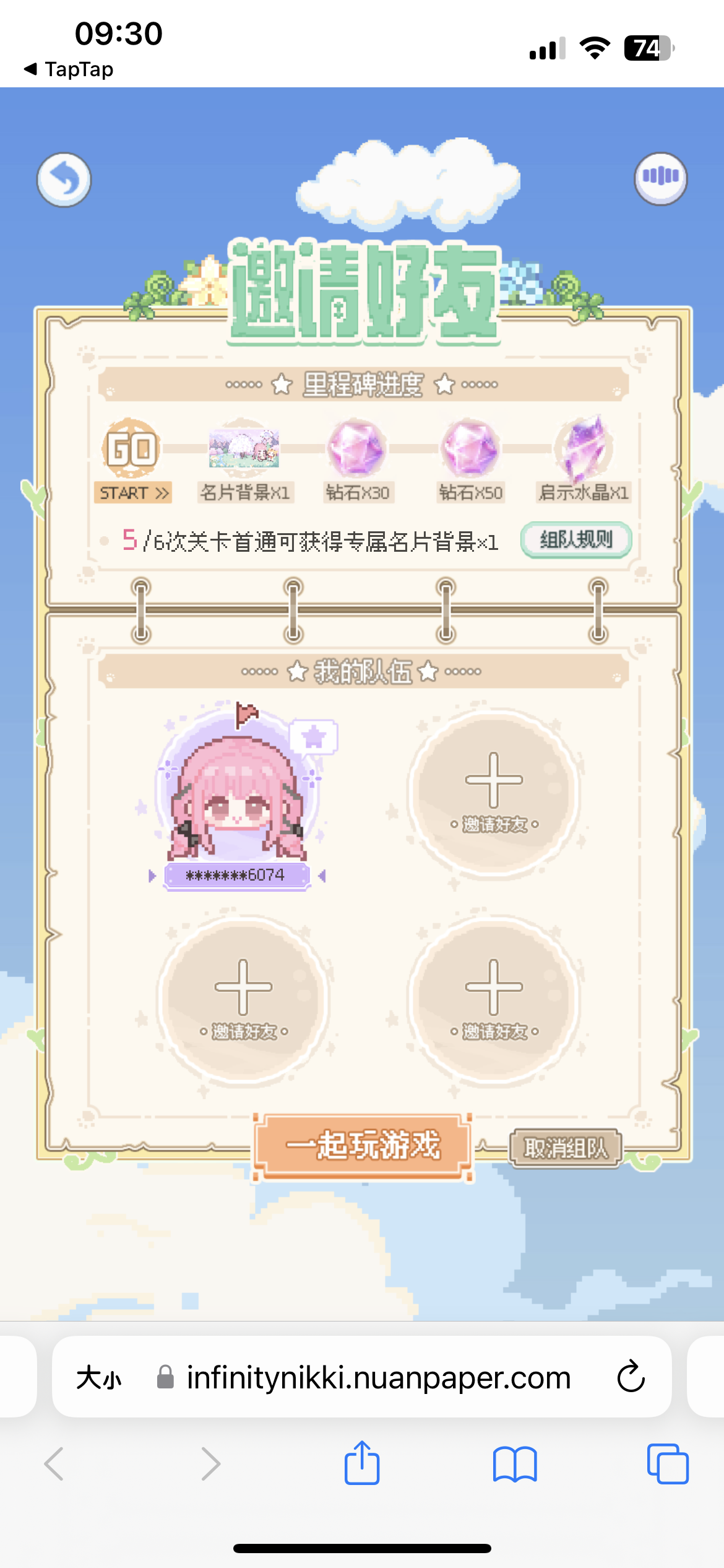 还有没有没组队的朋友,一起组队吧!「暖暖的拾光小屋」活动开启!点击 https://infinitynikki.nuanpaper.com/proj/NikkiHome.html?qqgj=xT8nTLTpVy 加入好友队伍;前往页面完成更多任务,可赢取钻石、启示水晶等多重游戏道具!还有机会赢iPad/PS5/游戏手柄/精美周边等好礼!