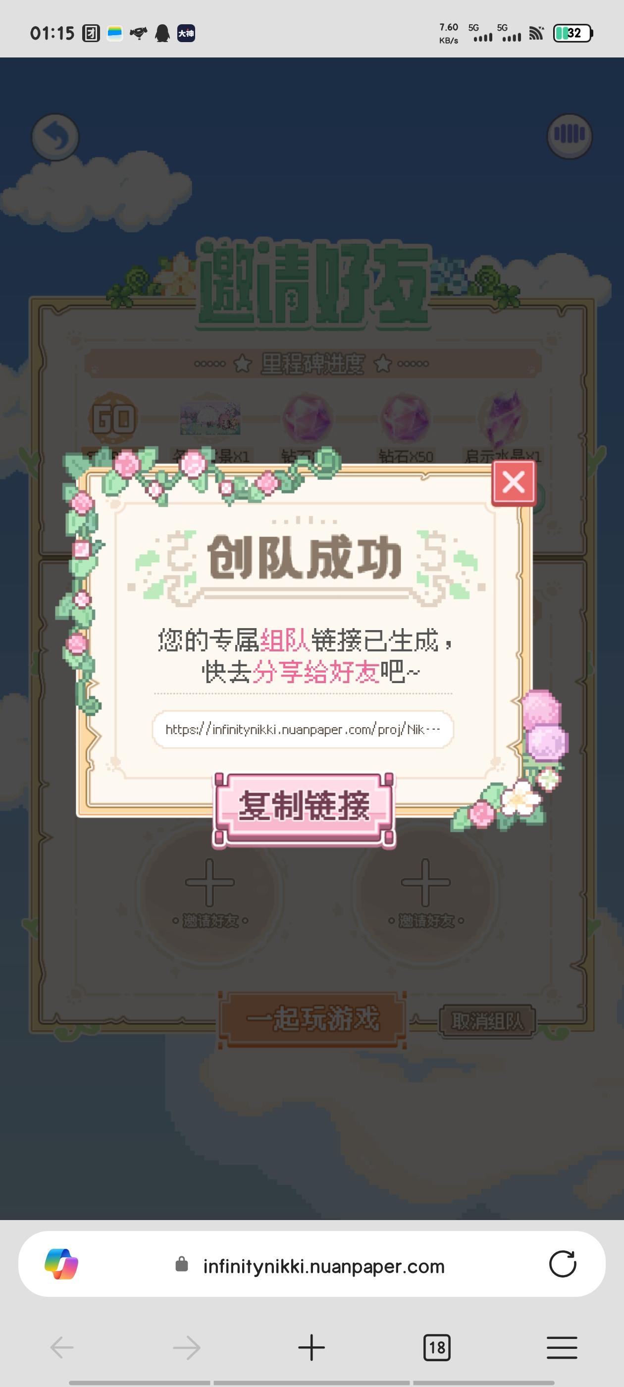 「暖暖的拾光小屋」活动开启!点击 https://infinitynikki.nuanpaper.com/proj/NikkiHome.html?qqgj=W9Byr01YtQ 加入好友队伍;前往页面完成更多任务,可赢取钻石、启示水晶等多重游戏道具!还有机会赢iPad/PS5/游戏手柄/精美周边等好礼!#无限暖暖 #无限暖暖组队 #无限暖暖组队邀请