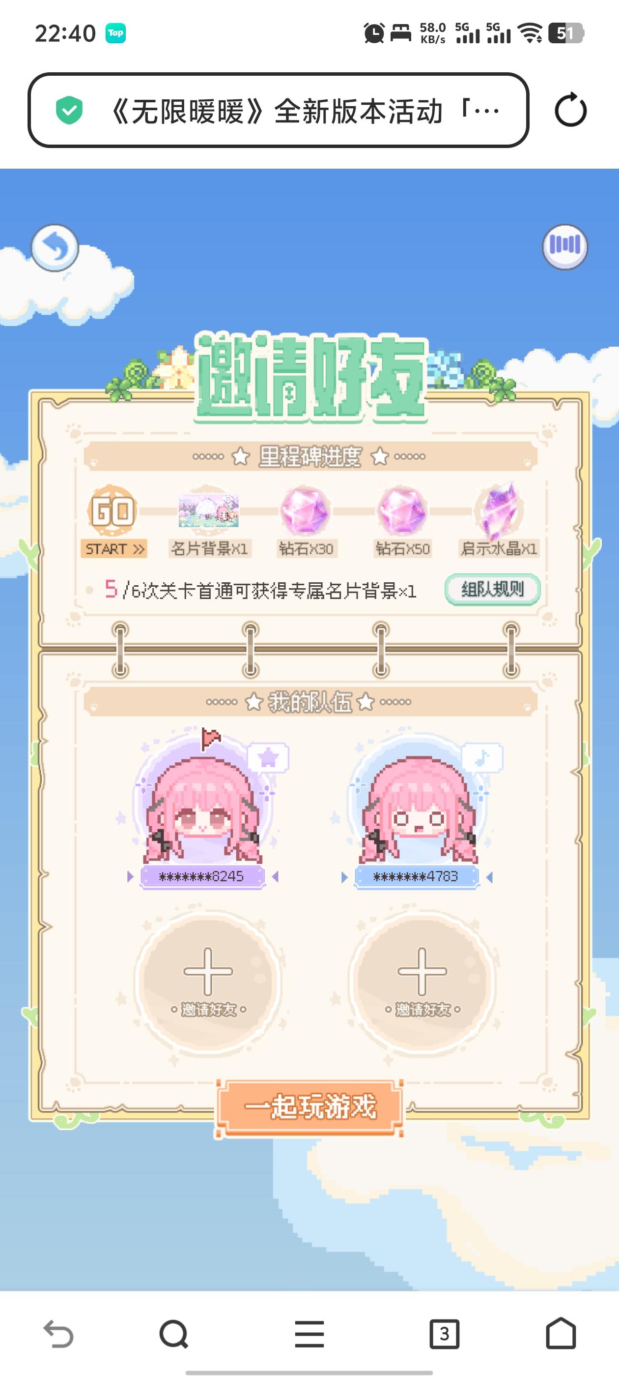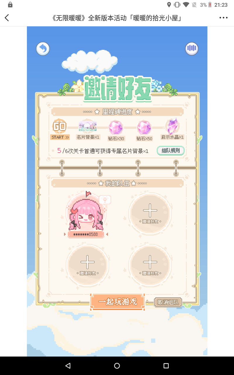 「暖暖的拾光小屋」活动开启!点击 https://infinitynikki.nuanpaper.com/proj/NikkiHome.html?qqgj=Uc3chHzKf8 加入好友队伍;前往页面完成更多任务,可赢取钻石、启示水晶等多重游戏道具!还有机会赢iPad/PS5/游戏手柄/精美周边等好礼!##无限暖暖
