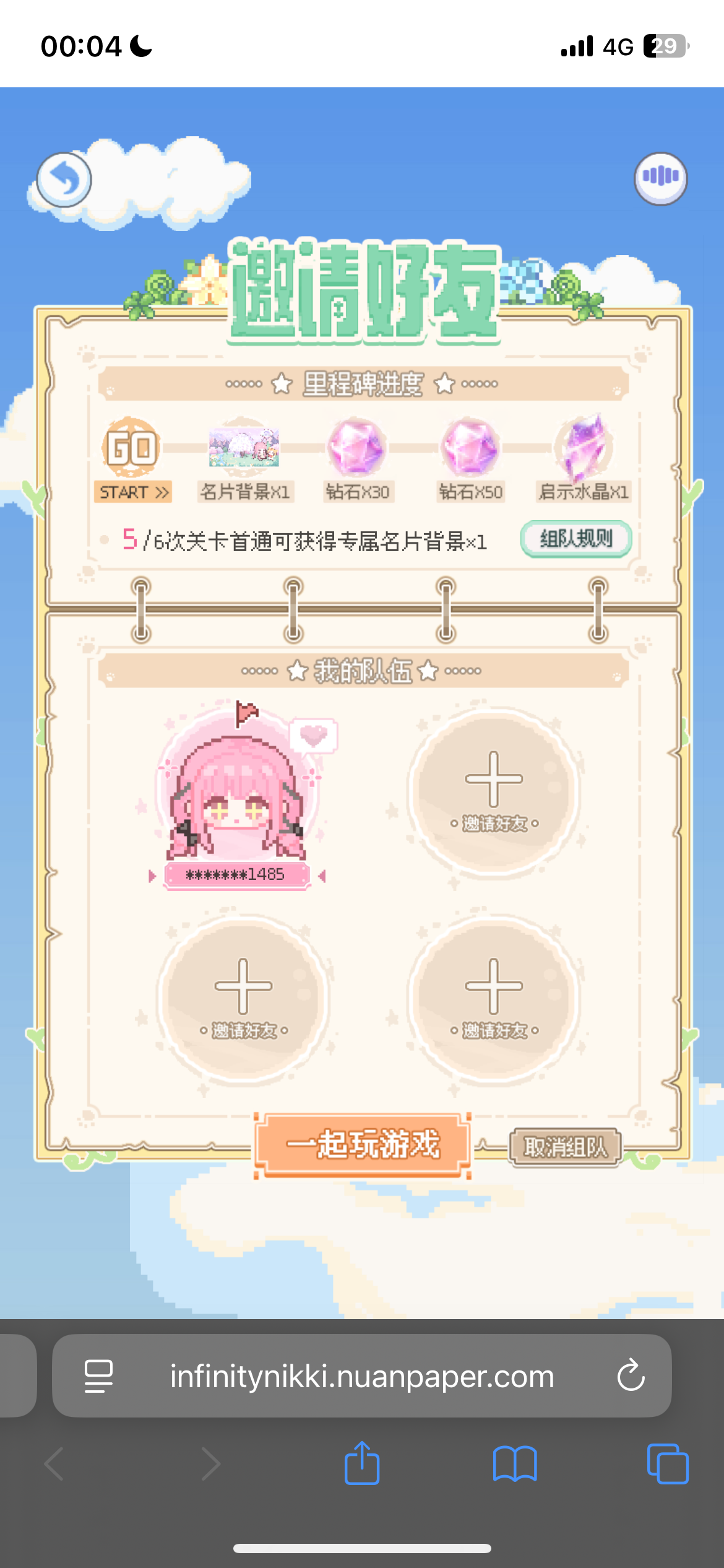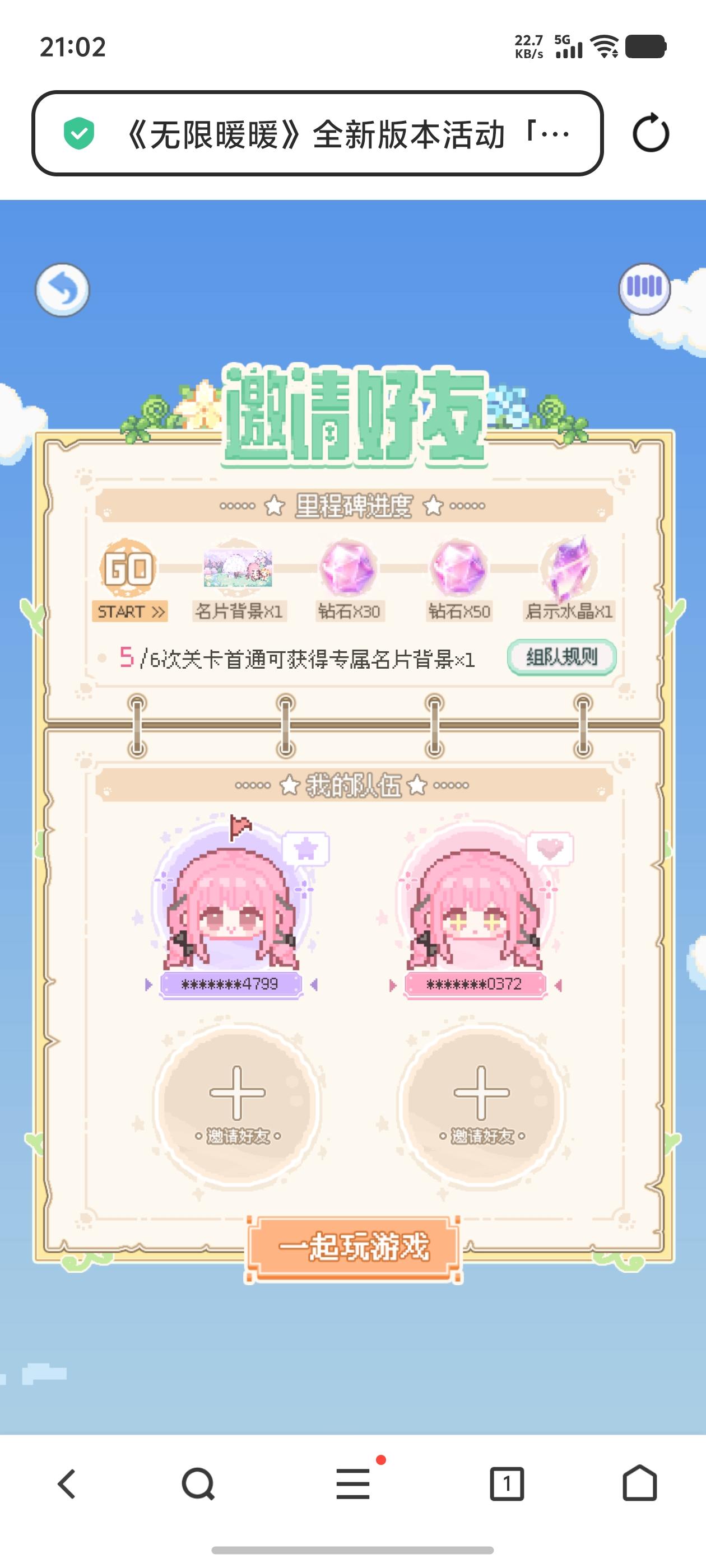 来人组队呀「暖暖的拾光小屋」活动开启!点击 https://infinitynikki.nuanpaper.com/proj/NikkiHome.html?qqgj=K6LD8e6Jfi 加入好友队伍;前往页面完成更多任务,可赢取钻石、启示水晶等多重游戏道具!还有机会赢iPad/PS5/游戏手柄/精美周边等好礼!
