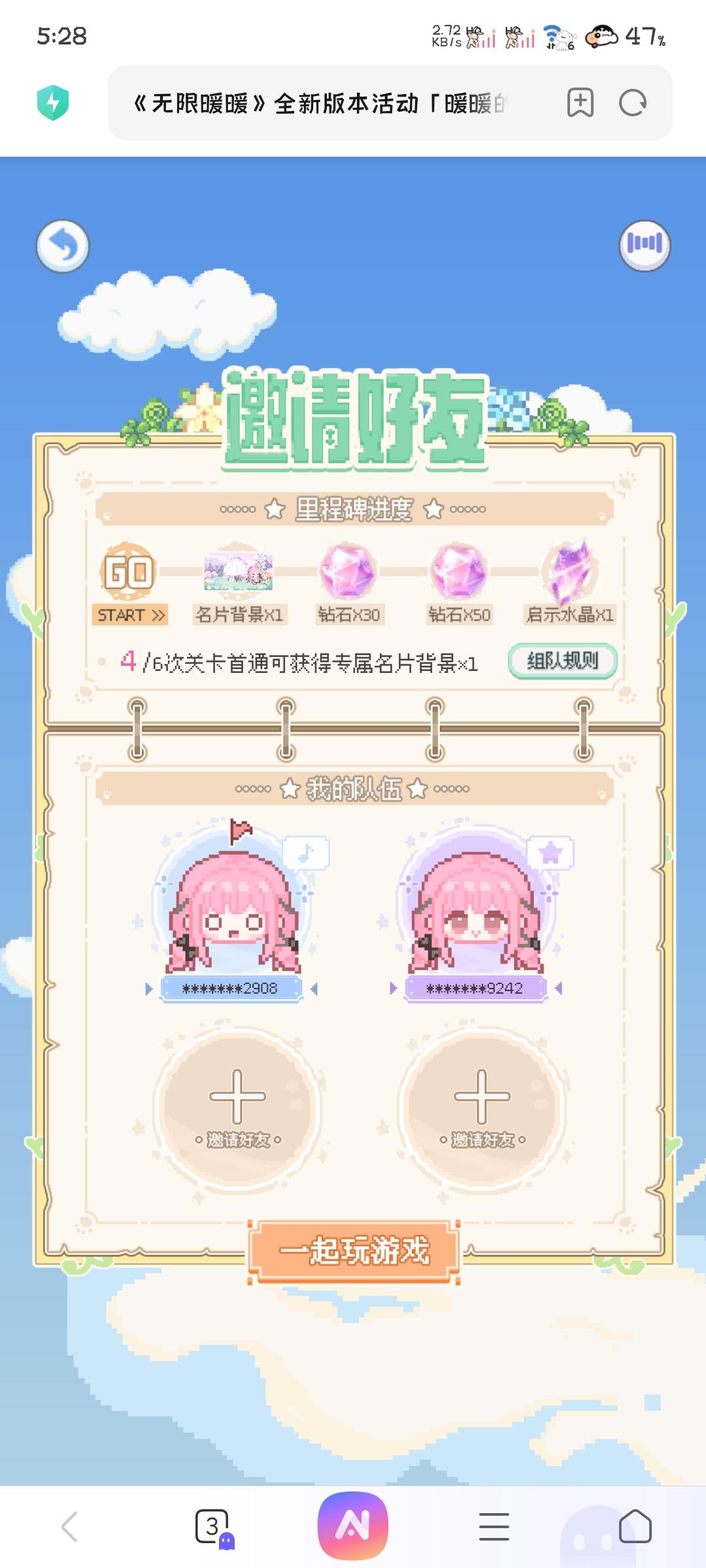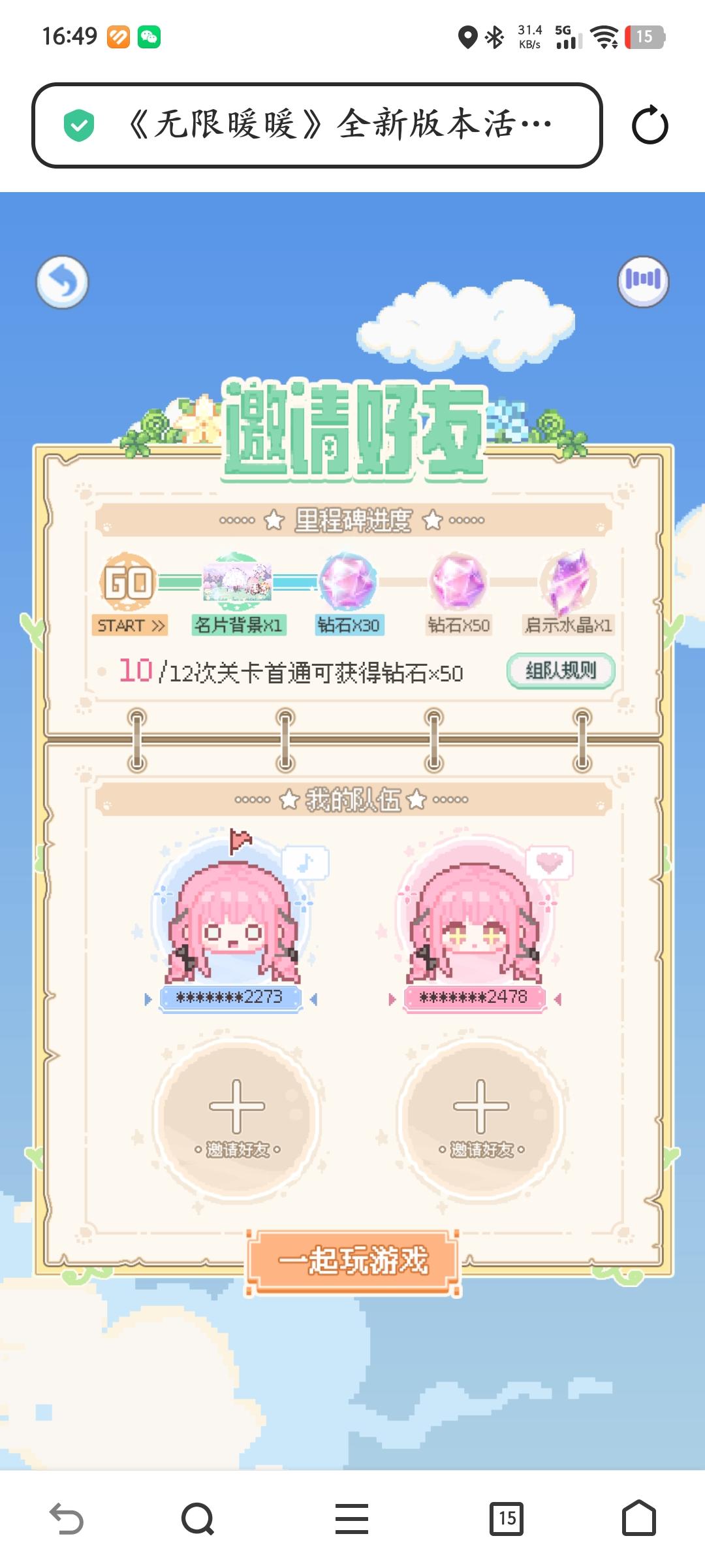 「暖暖的拾光小屋」活动开启!点击 https://infinitynikki.nuanpaper.com/proj/NikkiHome.html?qqgj=3FJHEfByzo 加入好友队伍;前往页面完成更多任务,可赢取钻石、启示水晶等多重游戏道具!还有机会赢iPad/PS5/游戏手柄/精美周边等好礼!