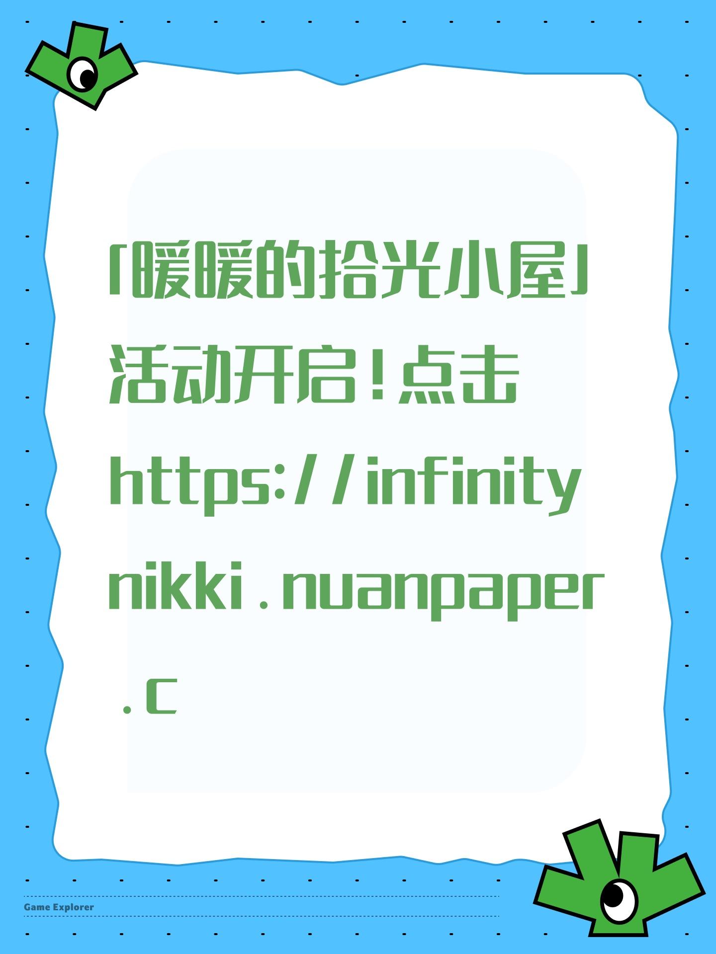 「暖暖的拾光小屋」活动开启!点击 https://infinitynikki.nuanpaper.com/proj/NikkiHome.html?qqgj=oXRavsxUXd 加入好友队伍;前往页面完成更多任务,可赢取钻石、启示水晶等多重游戏道具!还有机会赢iPad/PS5/游戏手柄/精美周边等好礼!