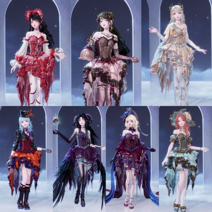 由于窝只抽齐了一套另外之前开色盘的材料几乎花光导致很多颜色都是初始免费色盘染出来的,所以在这里只能勉强展示7种染色搭配了,这个裙子真的很好染!#无限暖暖
