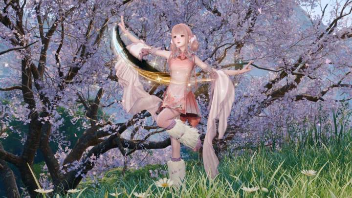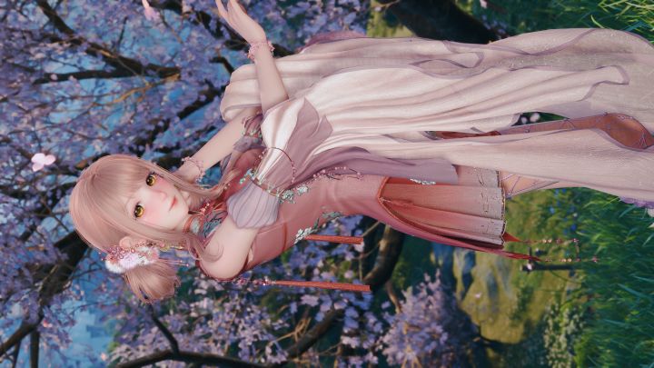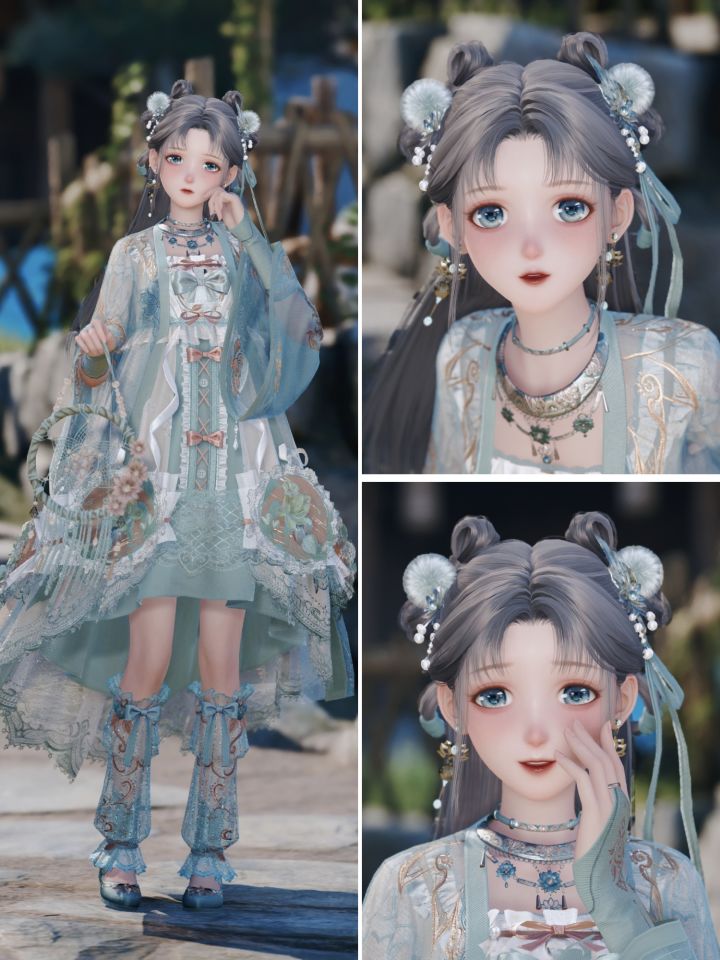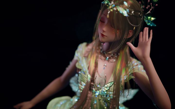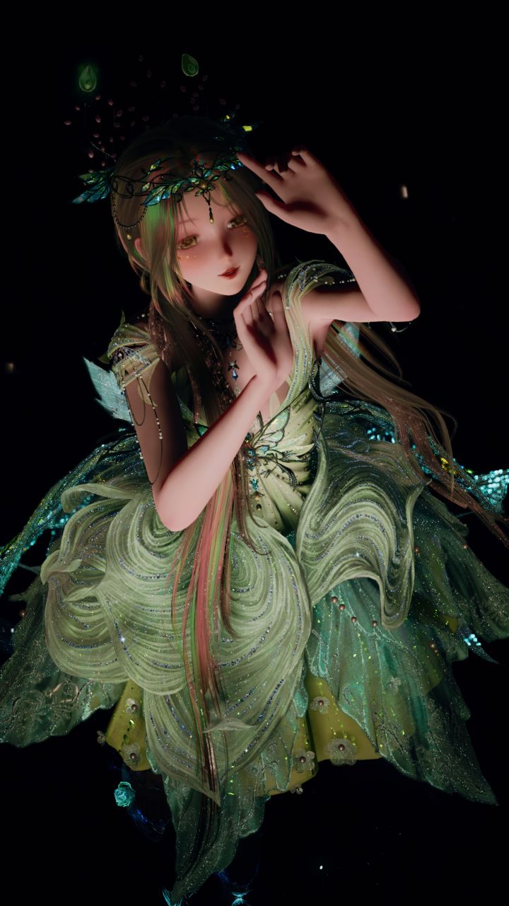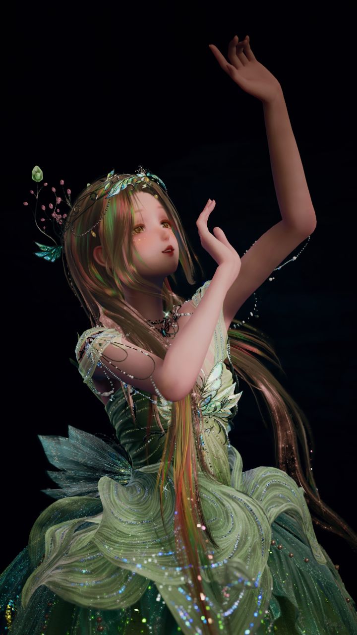 头发的流动的彩色光泽与裙子的闪相呼应她像林间的精灵听远方的风吹过故乡#无限暖暖九色万相生 #无限暖暖奇想家