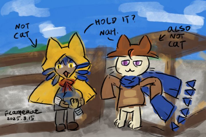 单纯想画一下OneShot的Niko和大喵互换服装,没别的原因,只是因为这俩都号称自己不是猫但都能发出猫叫声,嗯。然后因为偷懒所以越画越潦草(以及话说大喵的呆毛是焊在斗篷上的还是焊在大喵上的啊(#无限暖暖 #无限暖暖传说季二创