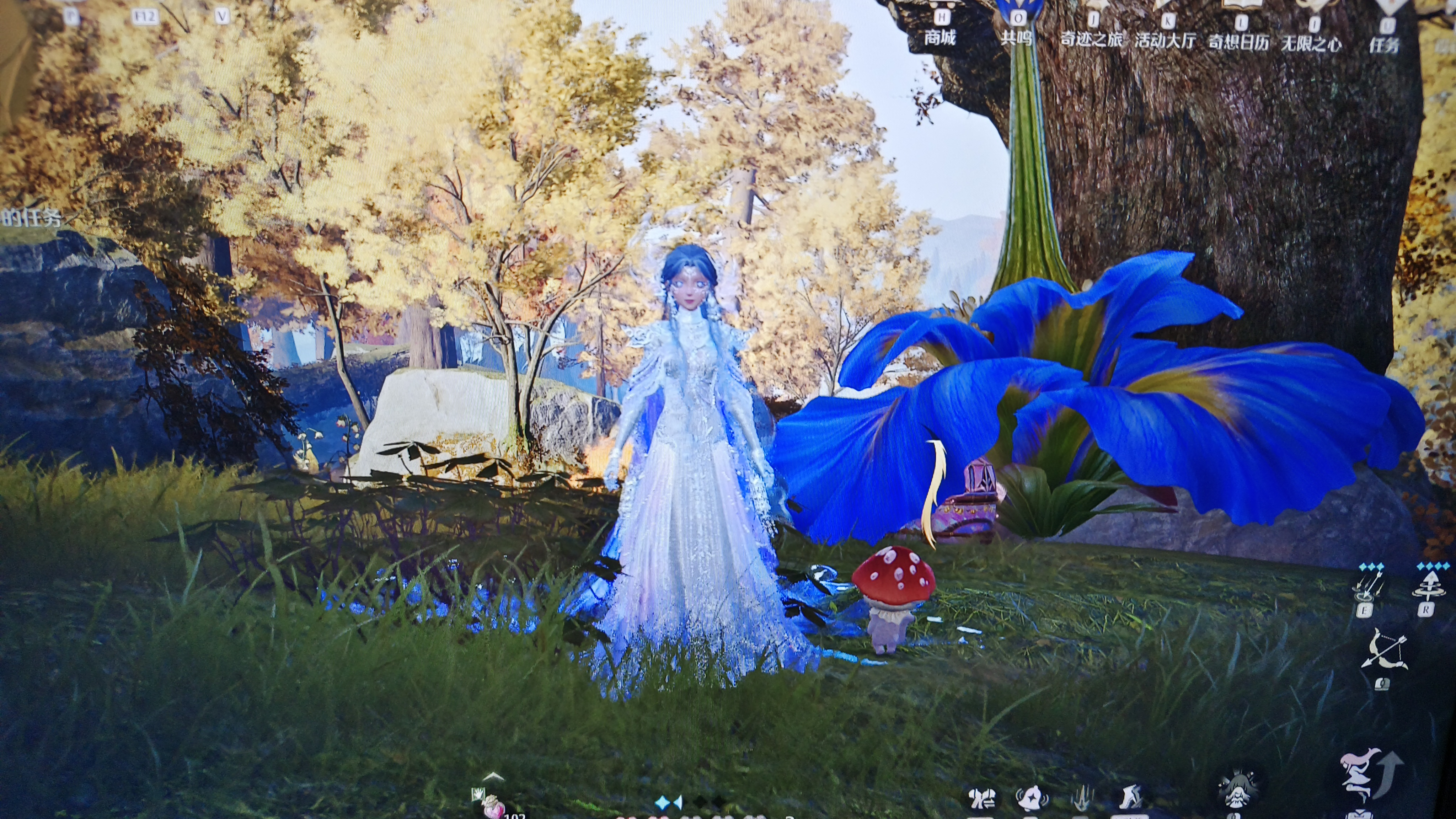 在花下面,变大吼它