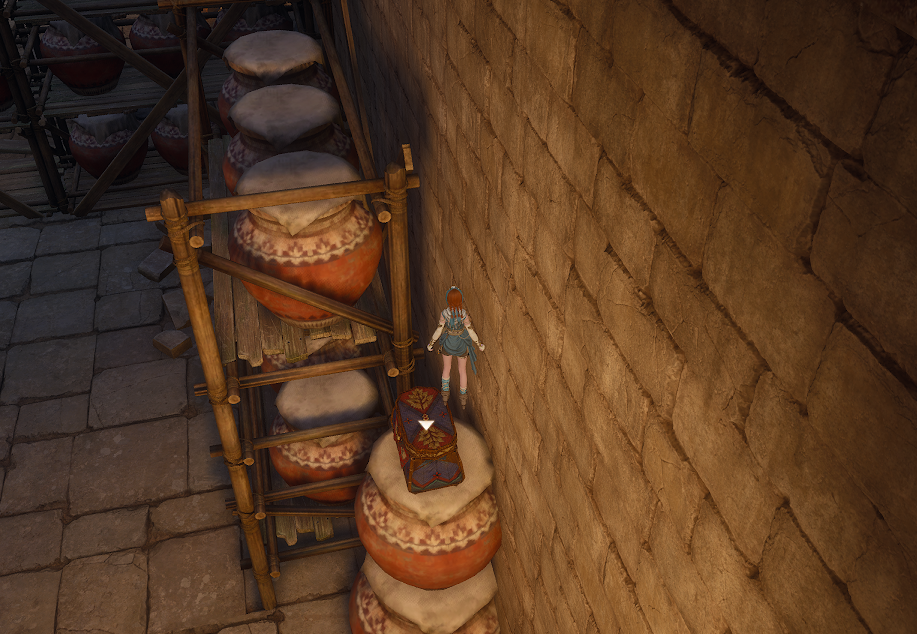 P3开启机关后下楼梯,楼梯下方被罐子包围。