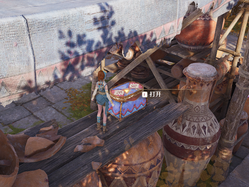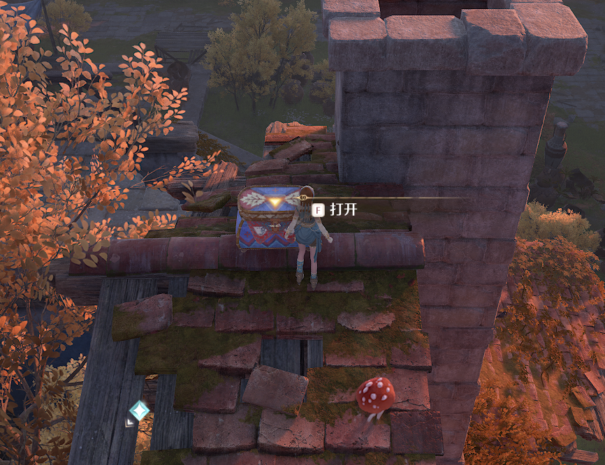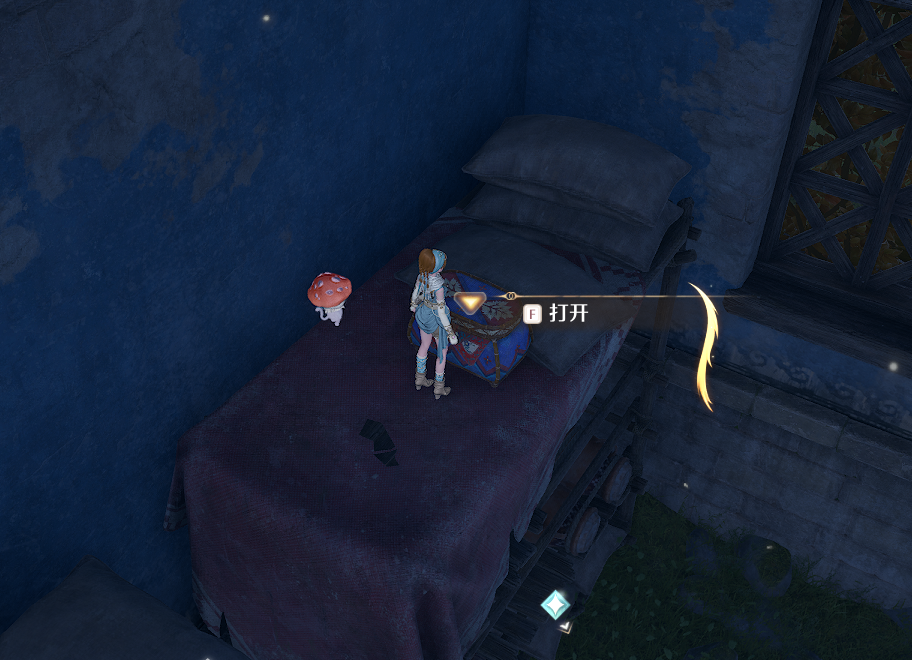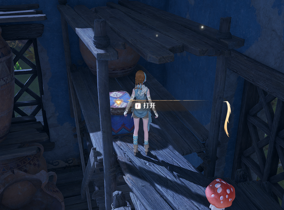 破屋内2层,借助木架和蹦床上来