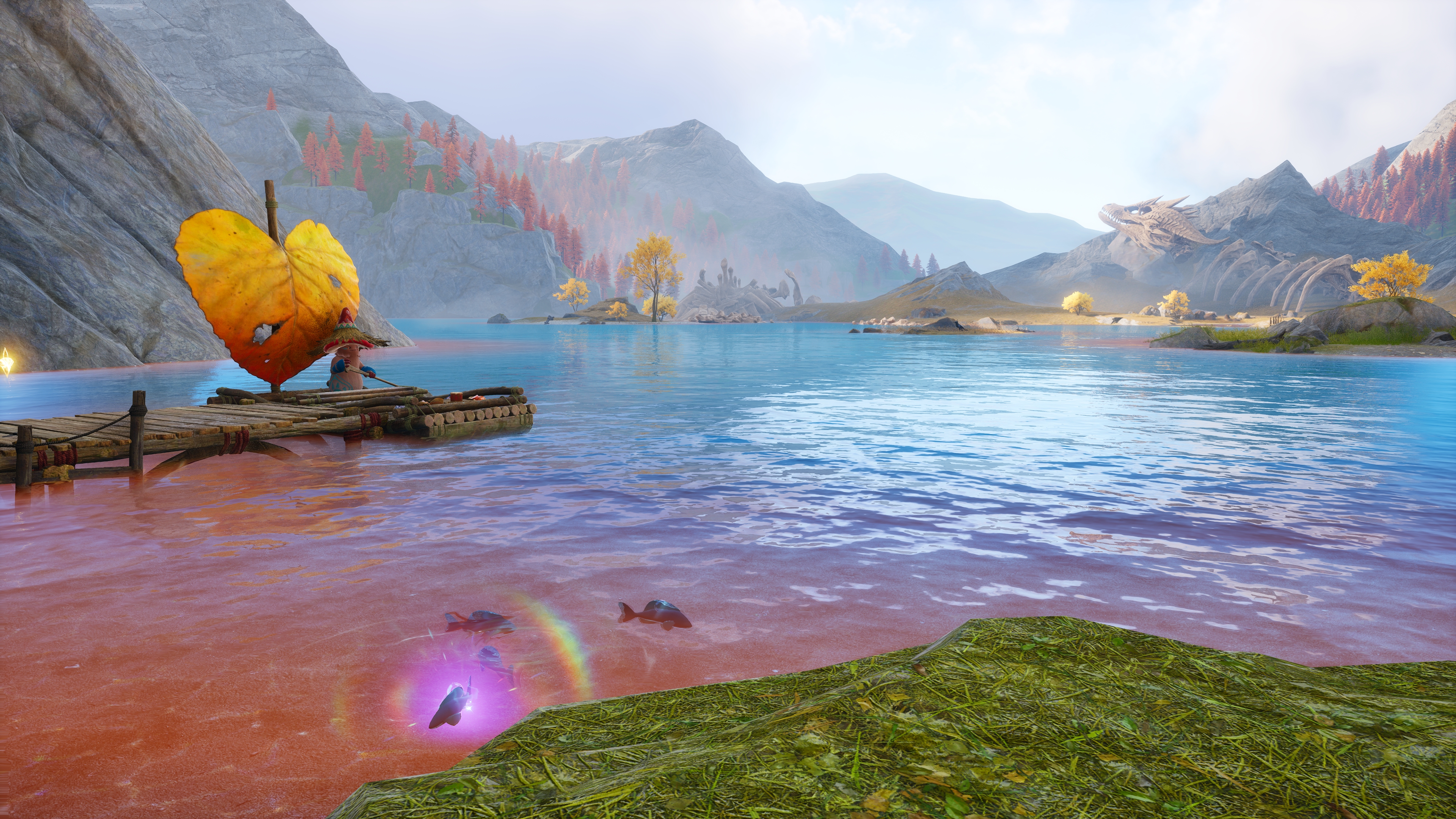 变大后挡住紫色激光,让紫色平台升起来,上面放的金属方块自己挡住激光将平台固定住 沿着彩色平台往上跳就能抵达终点