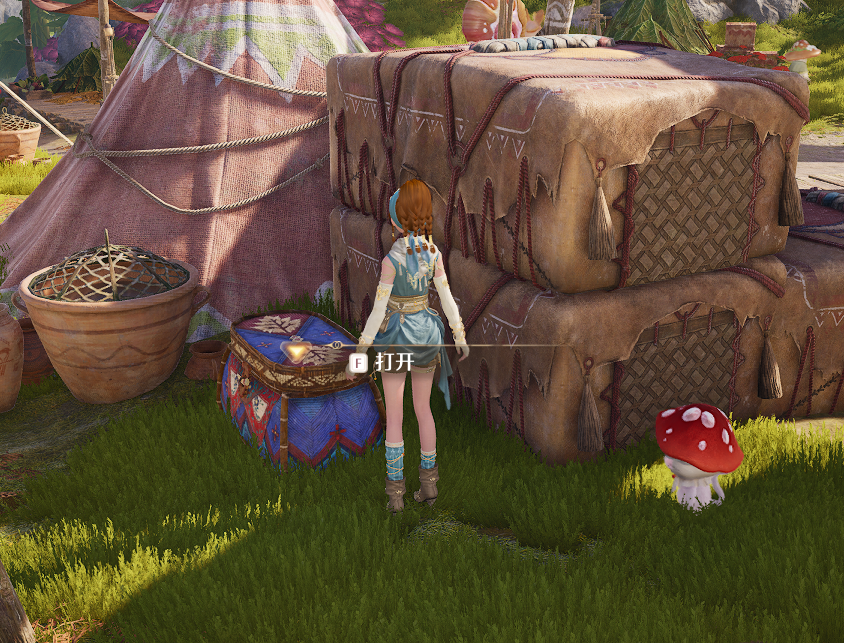 小游戏,门藏在木板房里,进去后一路用黏黏爪勾平台跳到终点即可