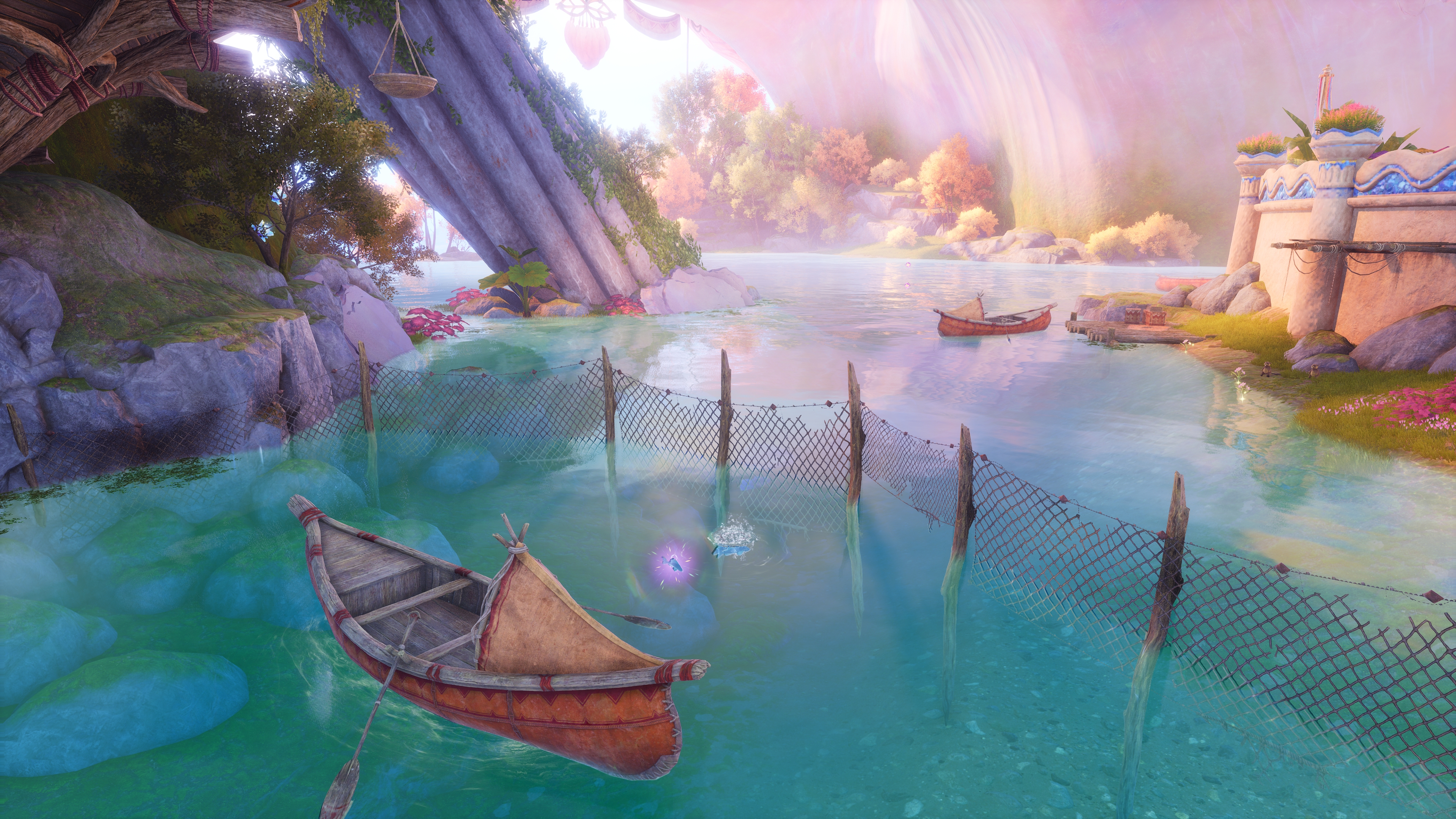 在靠近出口瀑布的地方,用黏黏爪勾住船头跳过来,站在船上钓鱼获得