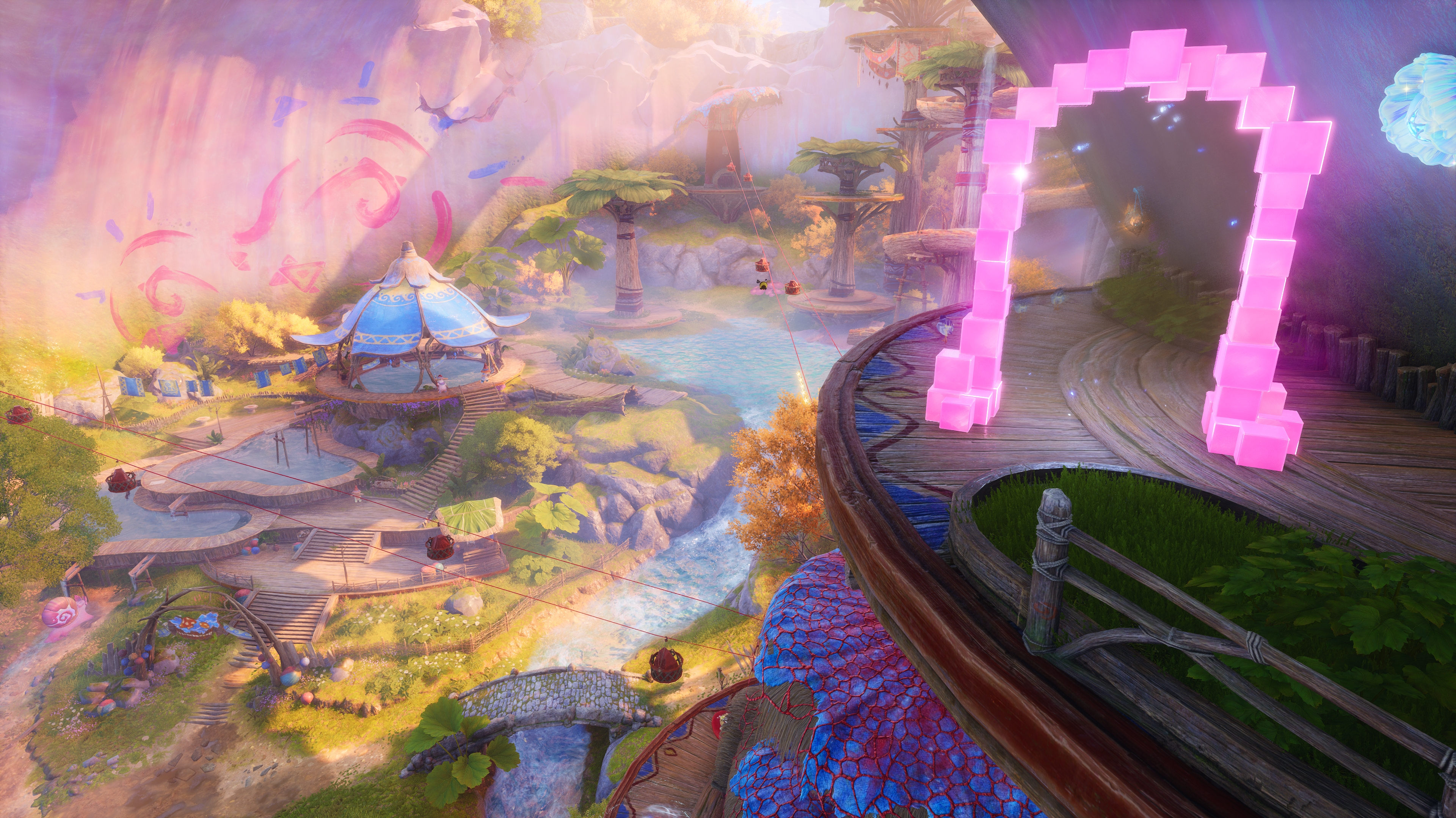 在云奇想星的上方,黏黏爪勾蜜蜂上去 进小游戏后一路用黏黏爪勾平台往前走到终点即可 可以用鸟套,换平台的时候增加容错 没有鸟套最好就把黏黏爪的捕捉距离升级了再来挑战