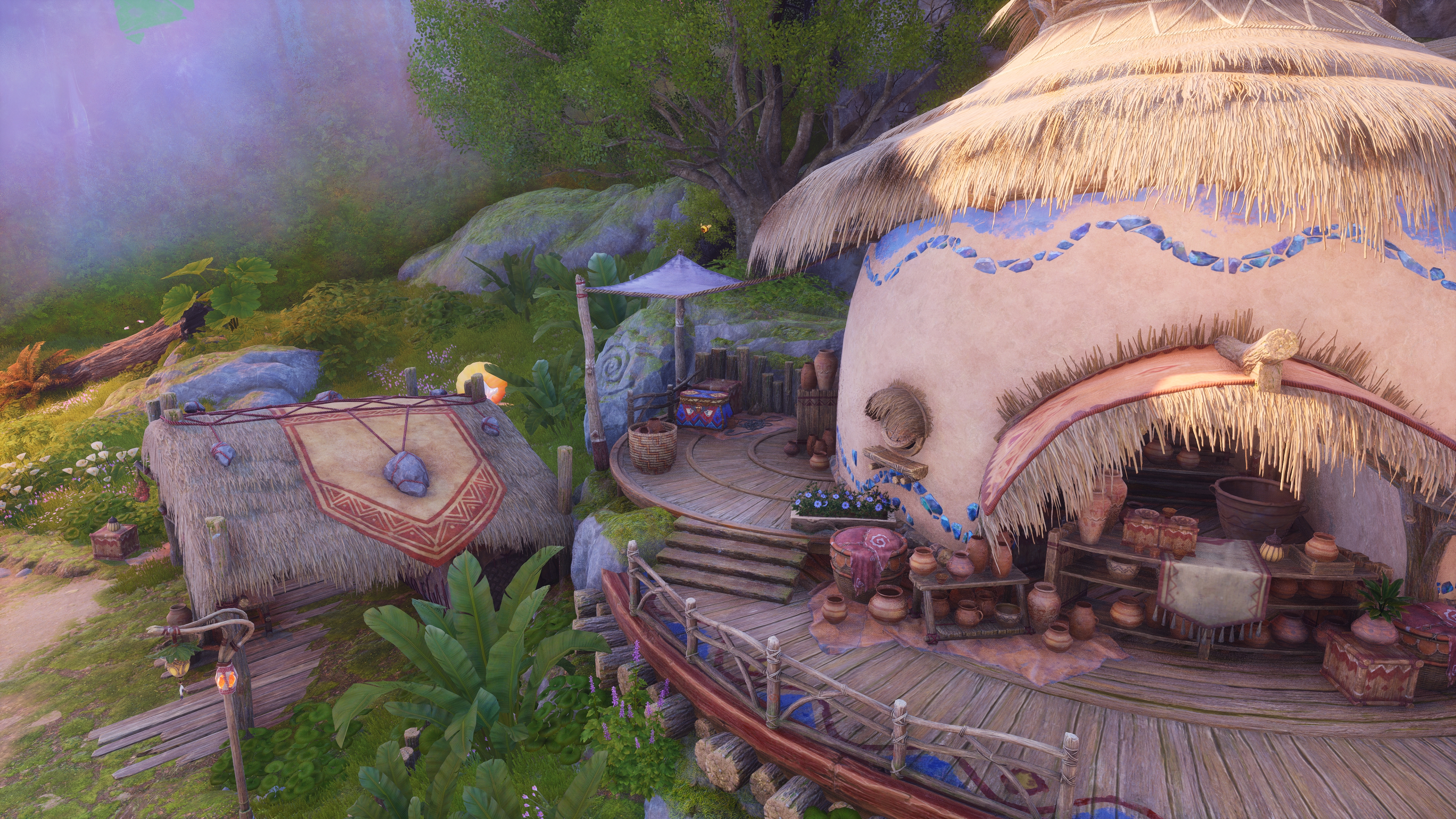 顺着树屋向上,高处的伞菇上