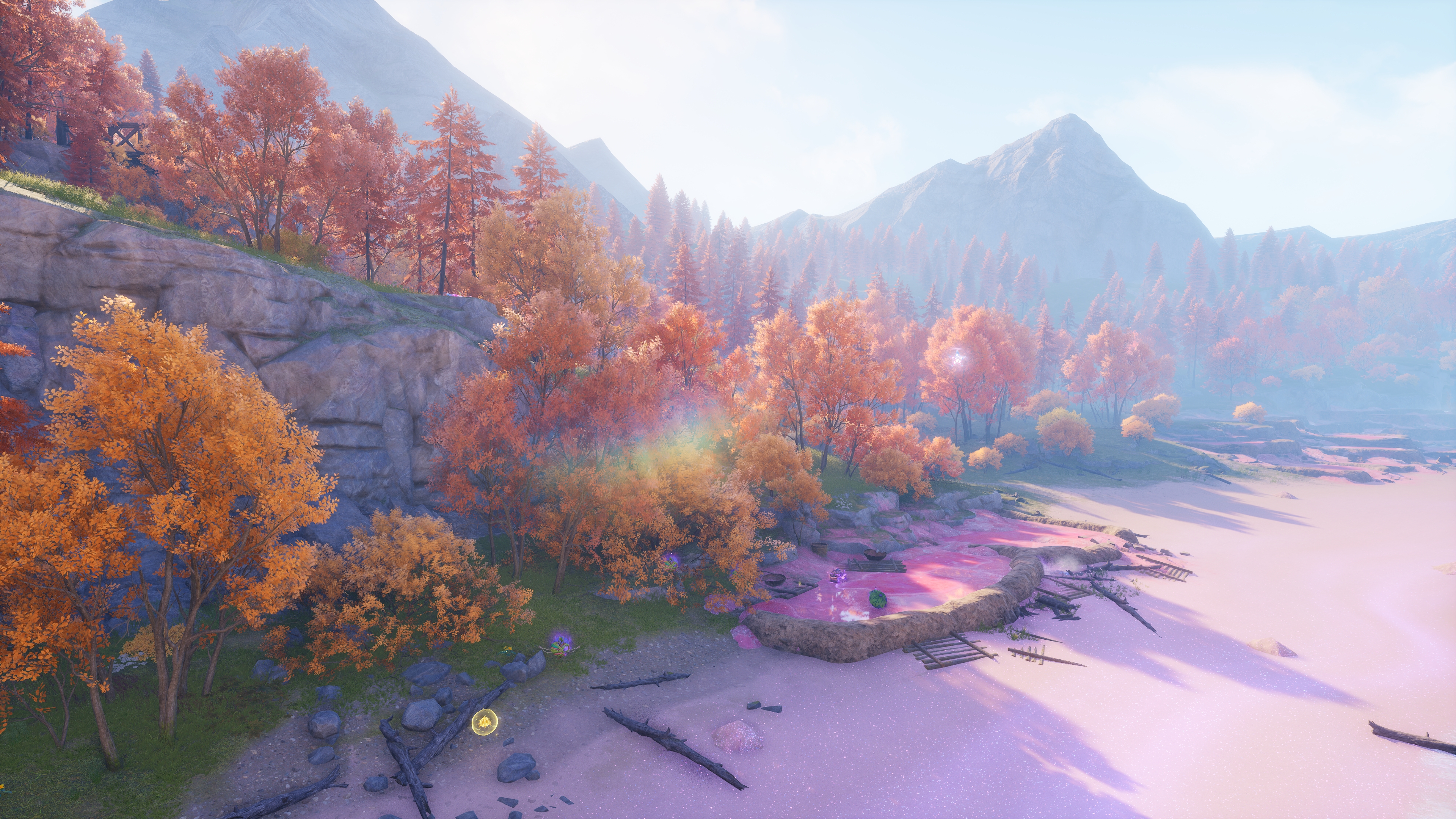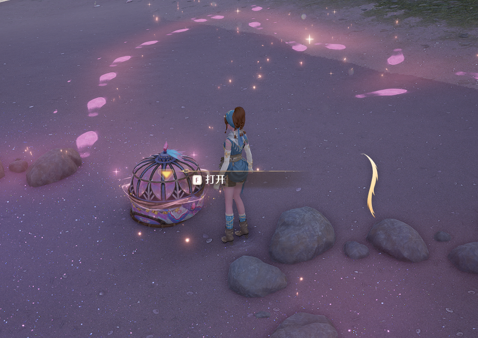 在盐田上方,去对岸清洁大鸟,然后骑上鸟飞过来拿