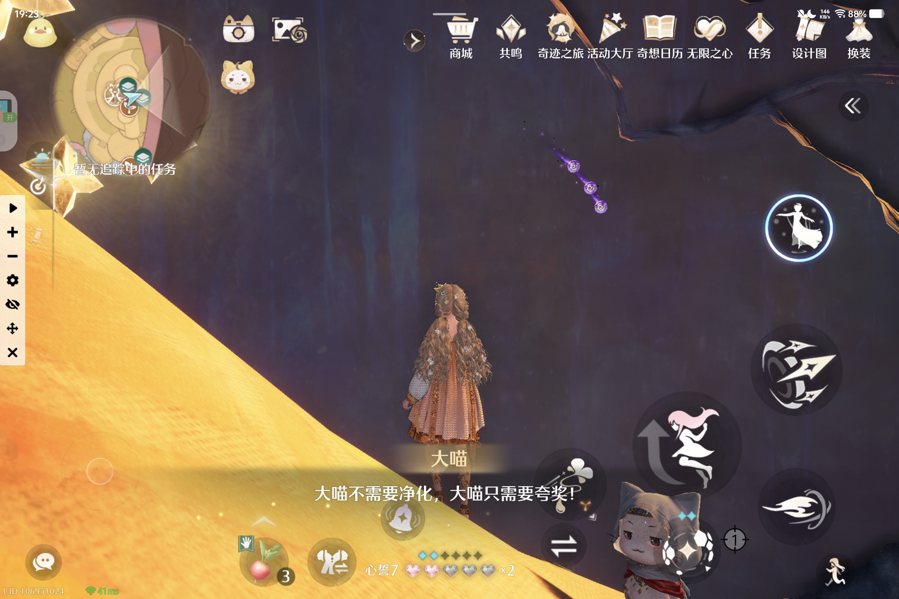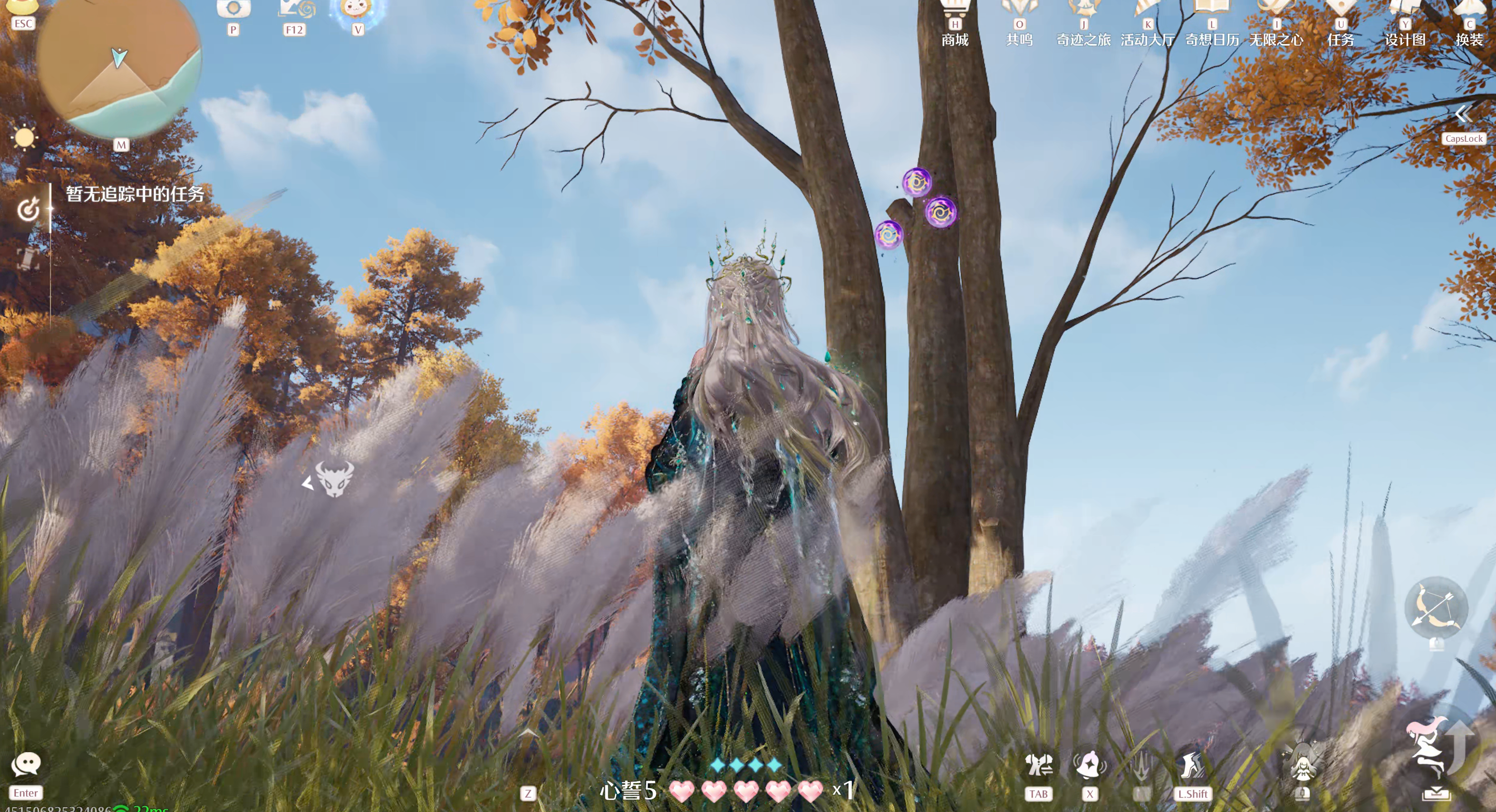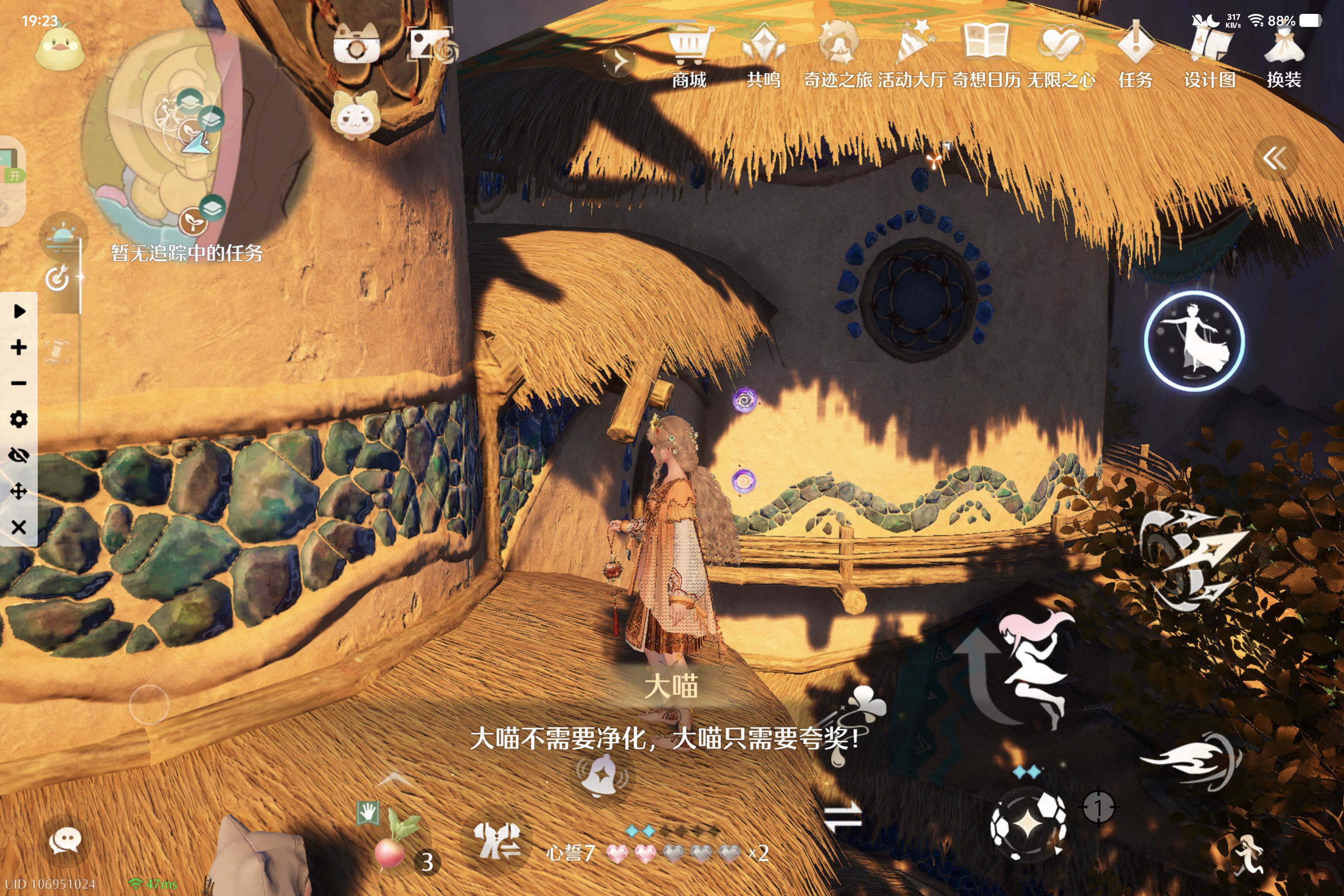 来到攻略标记点位置,房子后面有两颗灵感露珠,然后再跳上面前的房子,视角按地图的右边转,空中飘着三颗灵感露珠