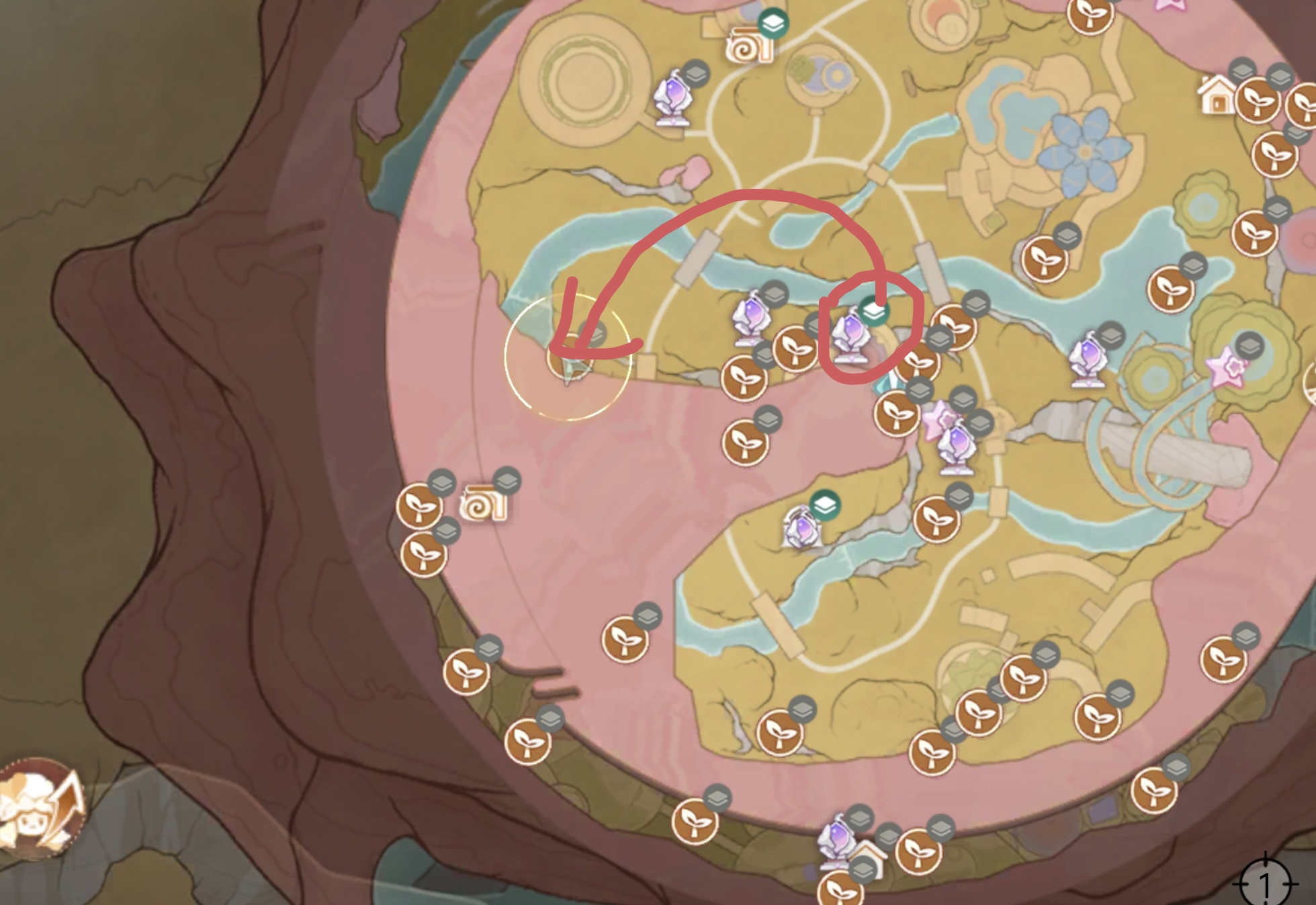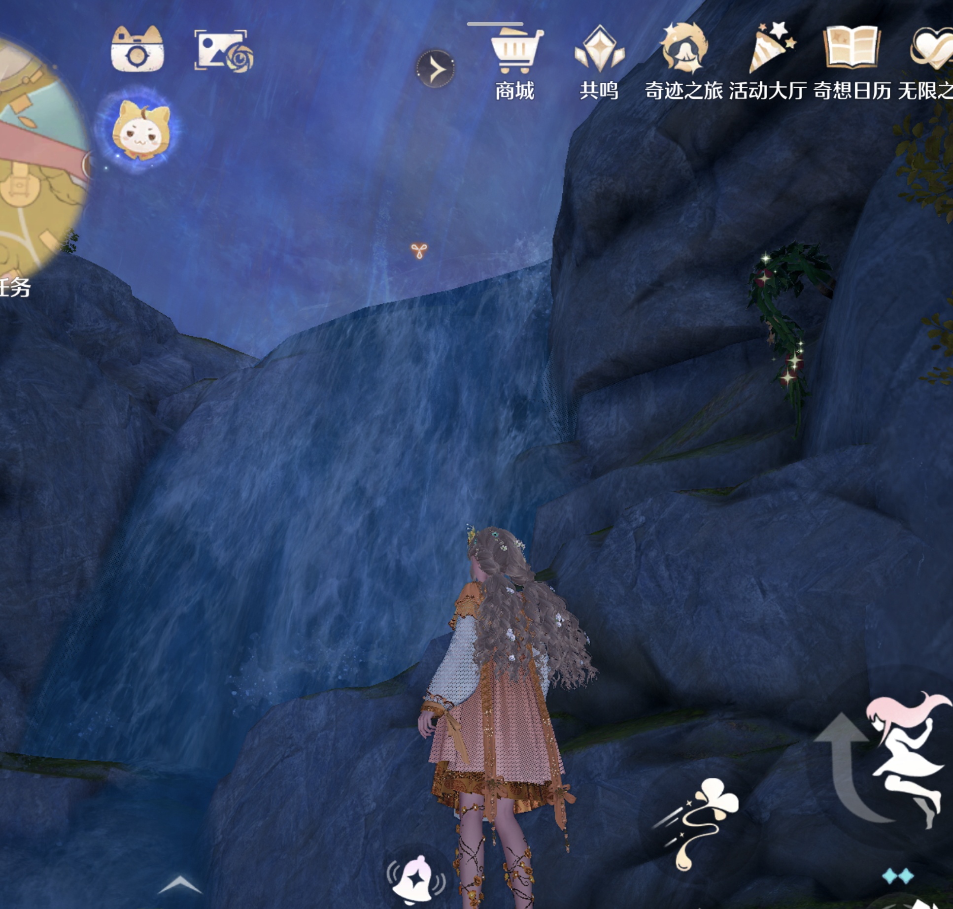 从第二层我红线圈出来的传送点跑到攻略标记点位置,有个瀑布,在瀑布底部有两个灵感露珠,我这里拿了没显示