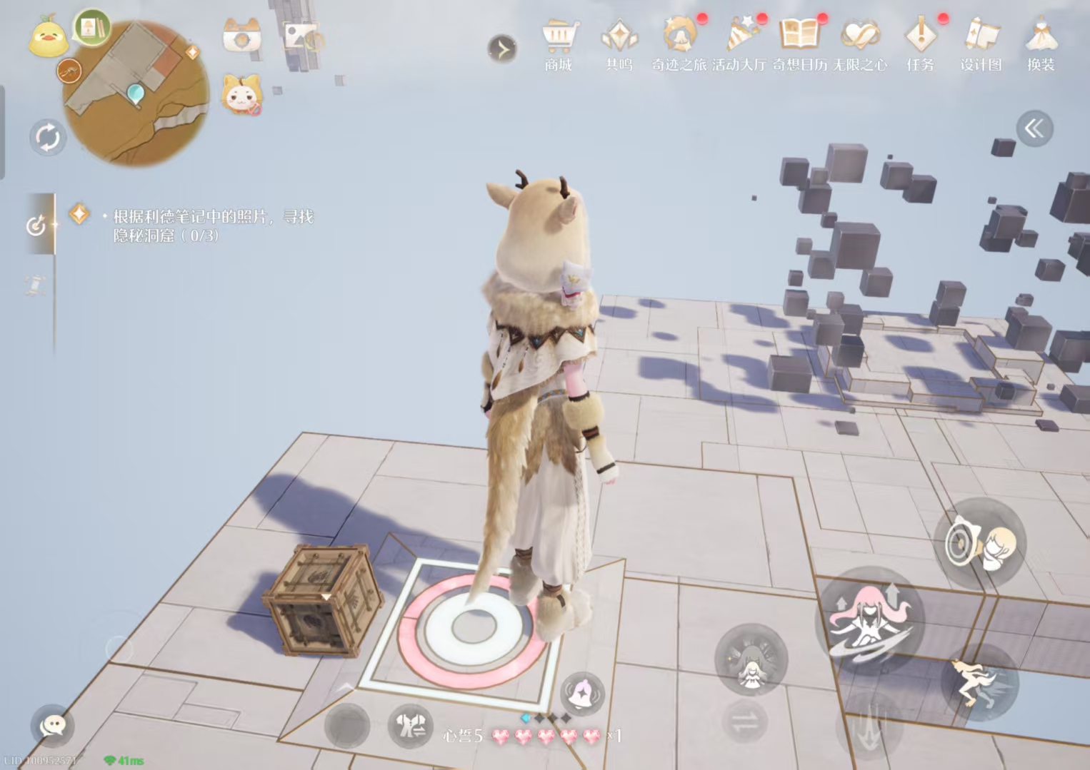 不需要任何箱子,直接变大到白色方块打开奇想星,然后冲刺过去立刻变小可逃课