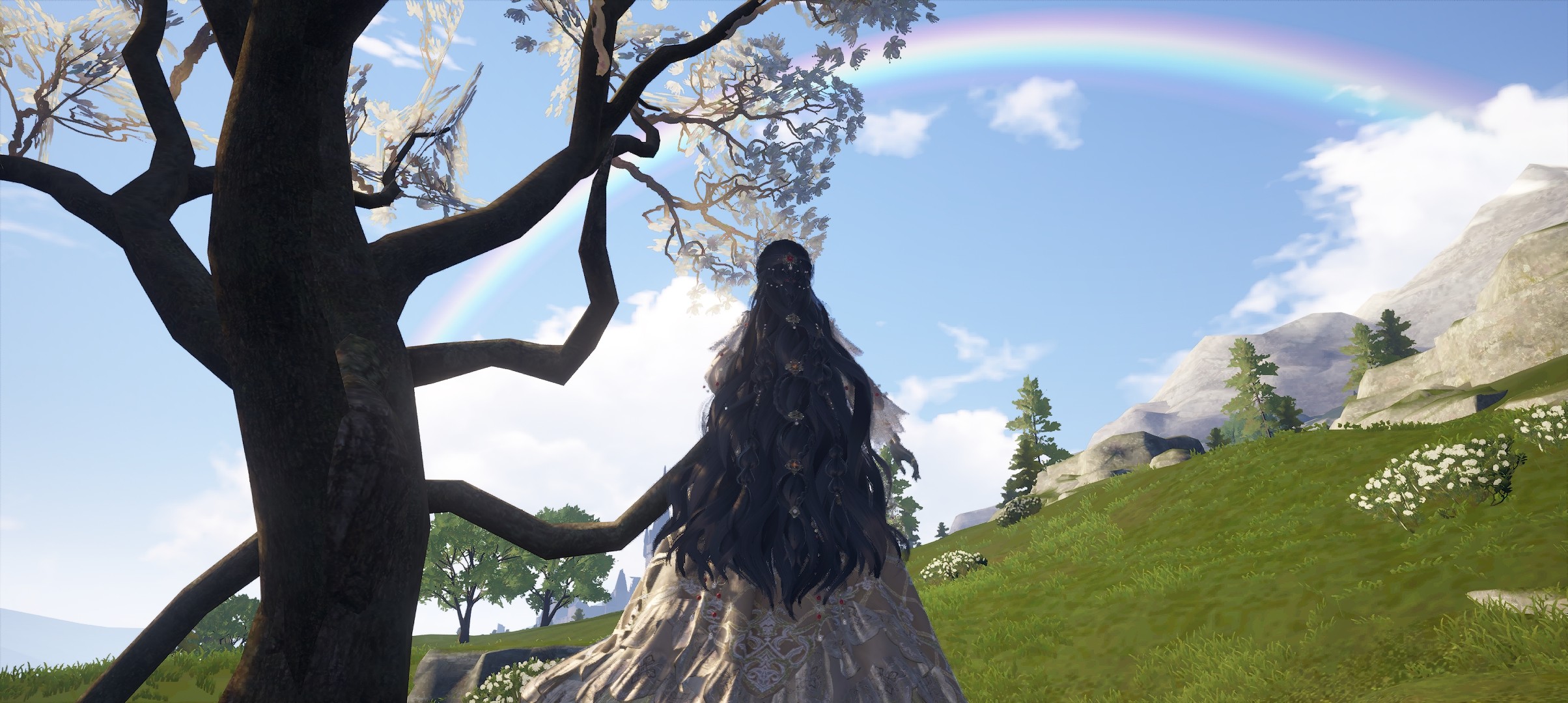 阳光正好,微风轻拂,一抬眼,便撞见天边那道温柔彩虹。天地间的美好都揉进这一瞬,只觉得连呼吸都裹着清甜的草木香气。#无限暖暖 #无限暖暖包出片的 #拍照