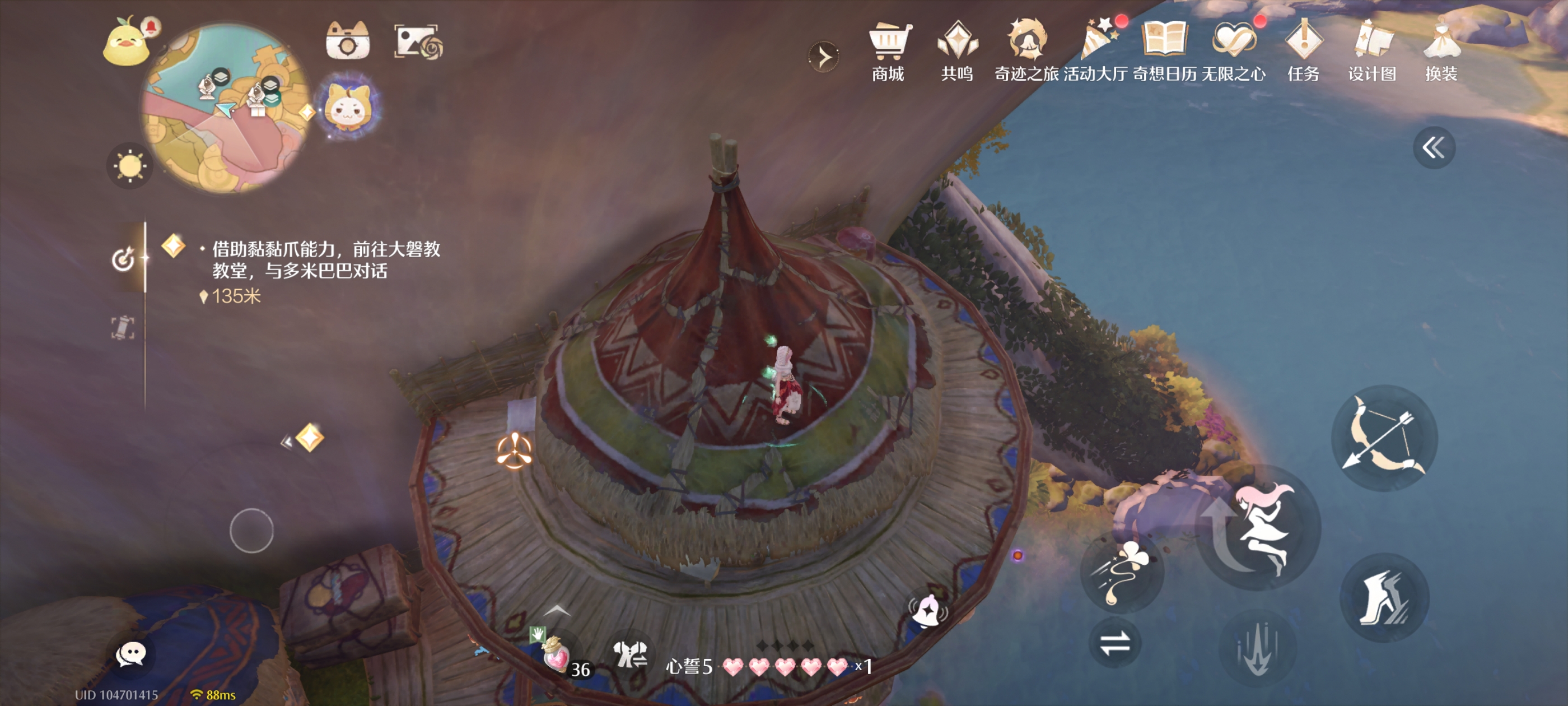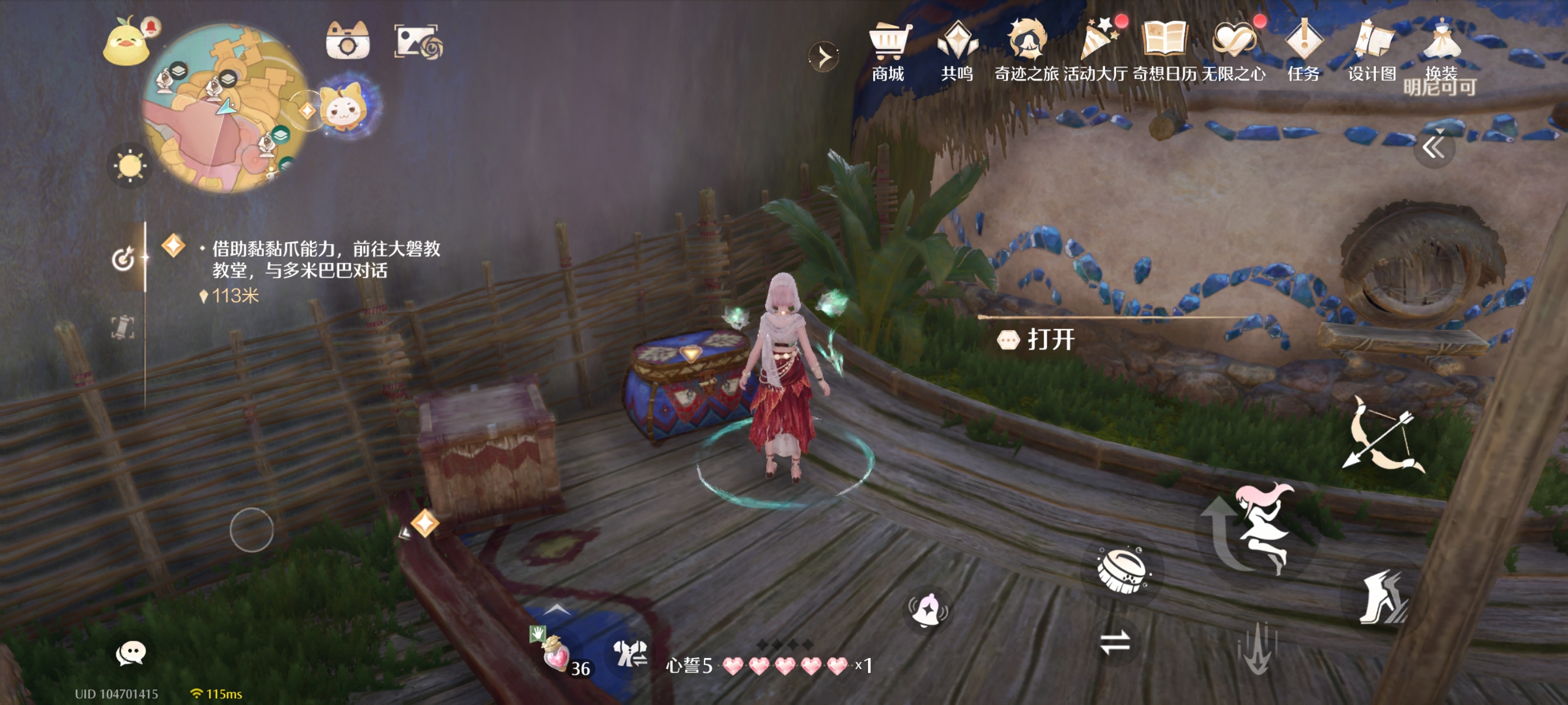 三颗会飞的灵感露珠,我已经收集了,本来应该在第一张图我视角朝向的位置。房子是最高最靠边这个,还有一个宝箱(同样我刚拿)。