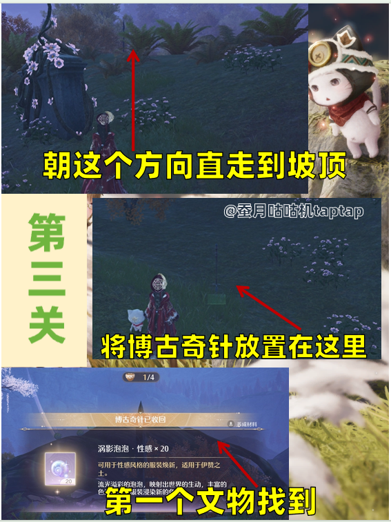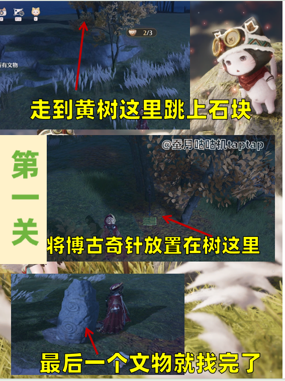 对于博古奇针的使用在这说明一下 放置后会出现飘散的闪光就是在指引文物所在的方向📍第一关:共三个文物(具体图片所示)📍第二关:共三个文物(具体图片所示)📍第三关:共四个文物 一个噗灵怪(具体图片所示)📍第四关:共四个文物 一个噗灵怪(具体图片所示)📍第五关:共四个文物 一个噗灵怪(剩余图片放置评论区自行查阅即可)以上就是这次奇针寻迹活动的全部关卡攻略 希望能帮