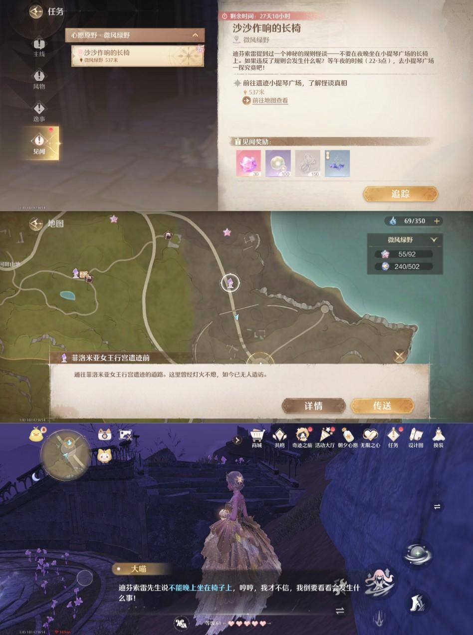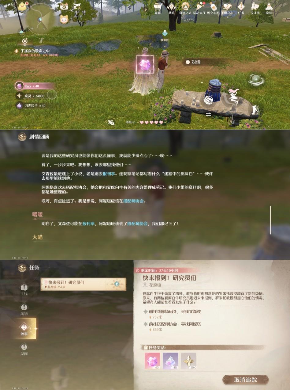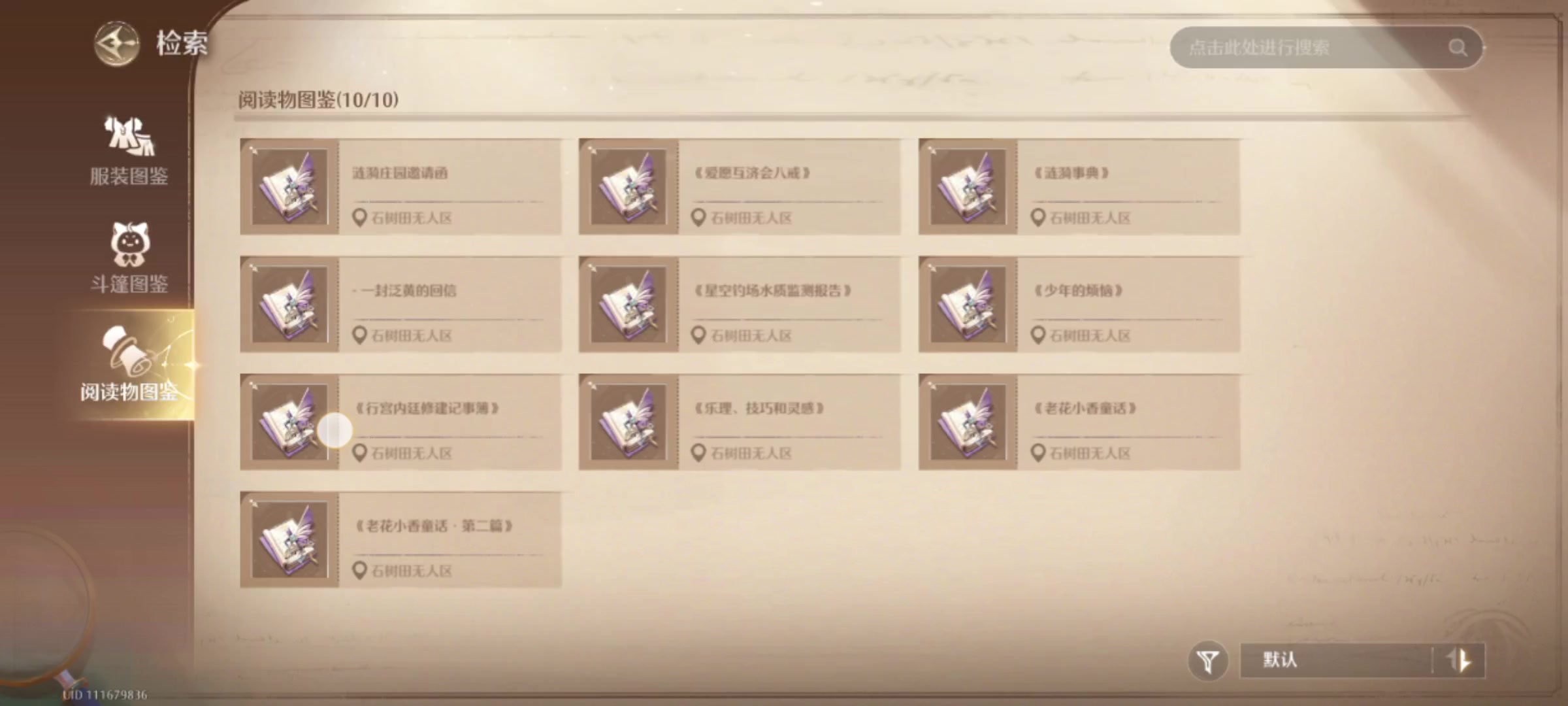 #无限暖暖 石树田无人区阅读图鉴 ·《行宫内迁修建记事簿》 ·《乐理,技巧和灵感》 可能是bug? 今儿为了焕新服装跑图刷噗灵无意间找到[表情_流口水]